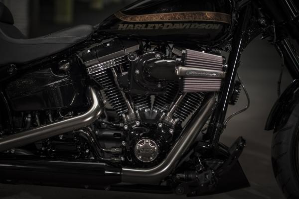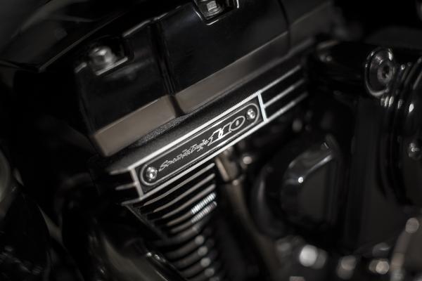 “We worked intensely with our plating suppliers to develop the hue and depth of Smoke Satin Chrome, and we are the first to use it in the motorcycle industry,” said Harley-Davidson Senior Stylist Dais Nagao. “It’s a finish that looks really contemporary and exclusive but also kind of sinister. We’ve carefully placed Smoke Satin Chrome next to a black surface so it creates a layered effect. For example, the top rocker cover is gloss black, and the lower cover is Smoke Satin Chrome. It’s on the exhaust header shields next to the black engine and black mufflers. We used Smoke Satin Chrome on the oil lines and fittings to add an unexpected detail.”