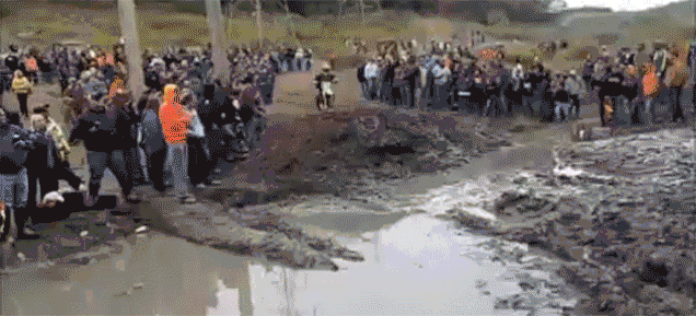 This happened near Wheeling, W. Va, during a recent race at Powerline Park, located in an old strip mine.