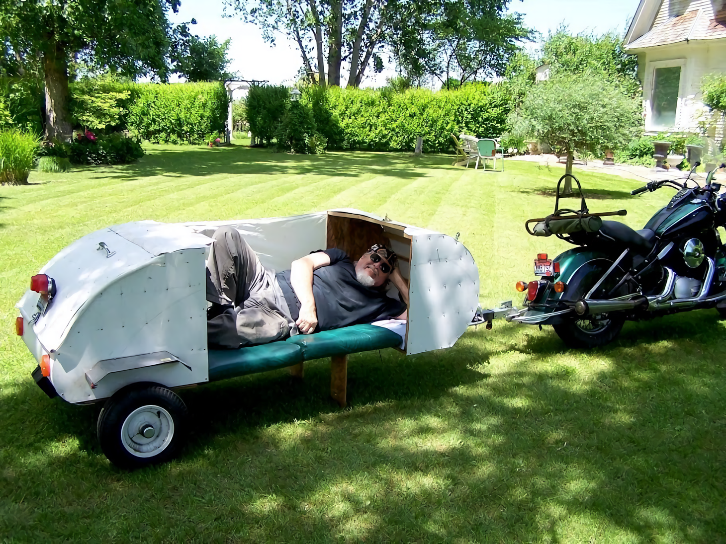 Such is the case with this awesome mini travel trailer we found on Reddit. looking like a scaled-down replica of a vintage teardrop trailer, it slides apart to reveal comfortable sleeping quarters for the rider. We’re sure the extra storage is a nice bonus, too, and we’re betting that the profile of the trailer minimizes buffeting and other issues while cruising.