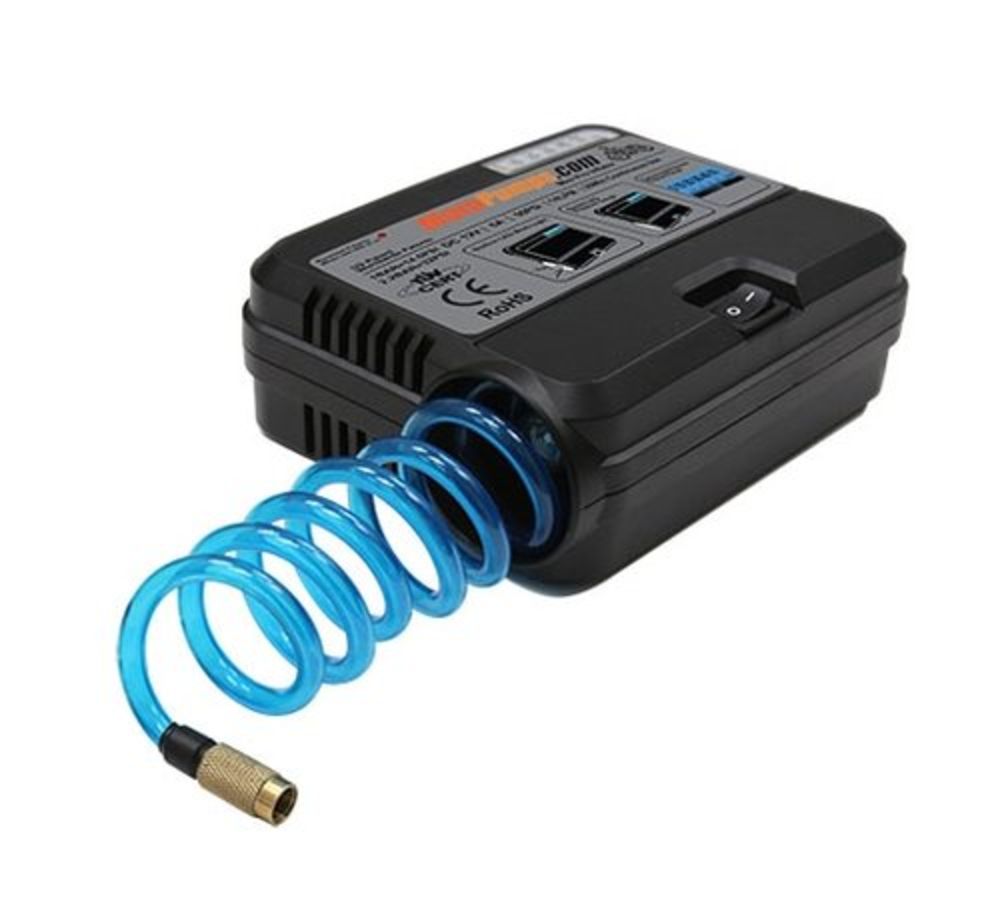 This pump is tiny, measuring just 2″ x 4.7″ x 5.75″ and weighing in at a scant 18 ounces. Don’t let the small size fool you — the Mini Pro Standard features a powerful pump, a high-quality air hose, and a backlit pressure gauge. It can hook up to a cigarette lighter outlet or a battery tender plug, and even has an on-board LED flashlight. Every motorcyclist should have one of these with them at all times.