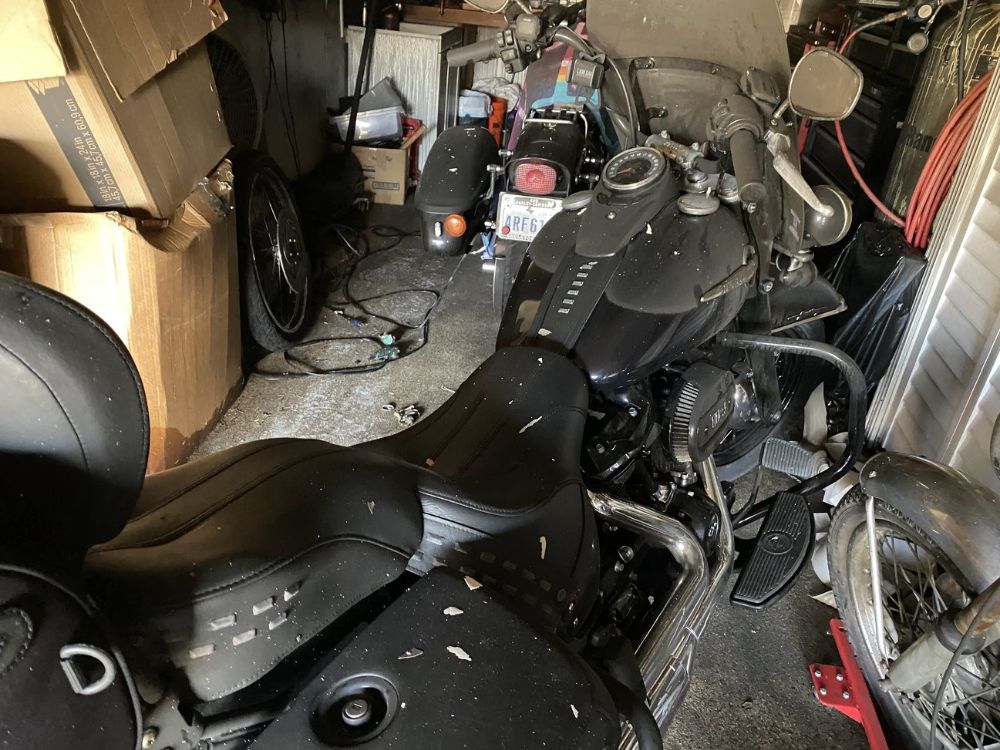 Back in January, he was woken up by his smoke detectors going off. There was no fire in the house, but the garage was a different story. When all was said and done, the fire destroyed two motorcycles — a 2005 FXSTSi and a 2019 Heritage Classic — and ruined a ton of parts and other items stored out there.