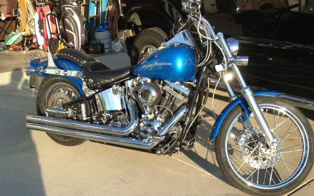 This bright blue beauty, a 2004 Harley-Davidson Softail Standard, is definitely a ride worth noting. Like most bikes out there, this one isn’t entirely stock. In fact, we’d say that it’s far from it!