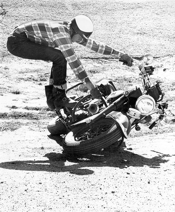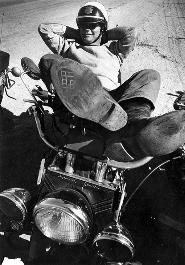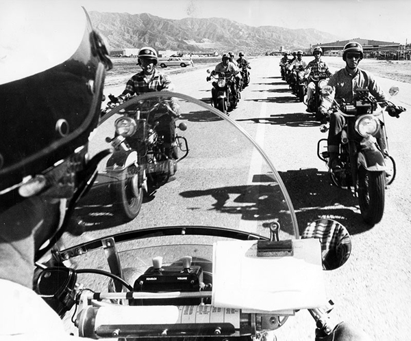 In the 1960’s, Burbank, CA motorcycle policeman would train monthly at the Lockheed Air Terminal in order to insure that they were ready for whatever might befall them while on patrol. Leaving their uniforms behind and dressing in street clothes, they would practice a number of maneuvers including riding across a wooden seesaw and jumping their motorcycles on the rugged terrain around the Terminal. Even though an officer may have occasionally dropped his motorcycle, these men knew how to ride their machines better than most modern day riders. Just think about how many times you’ve seen someone riding offroad on their RoadGlide and catching air off a jump or two…