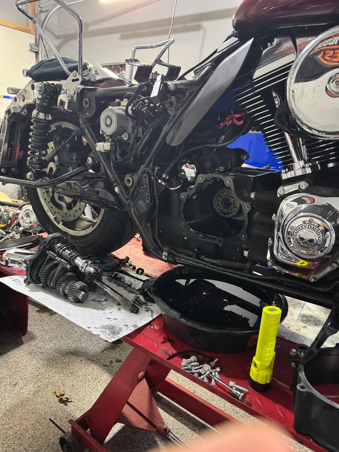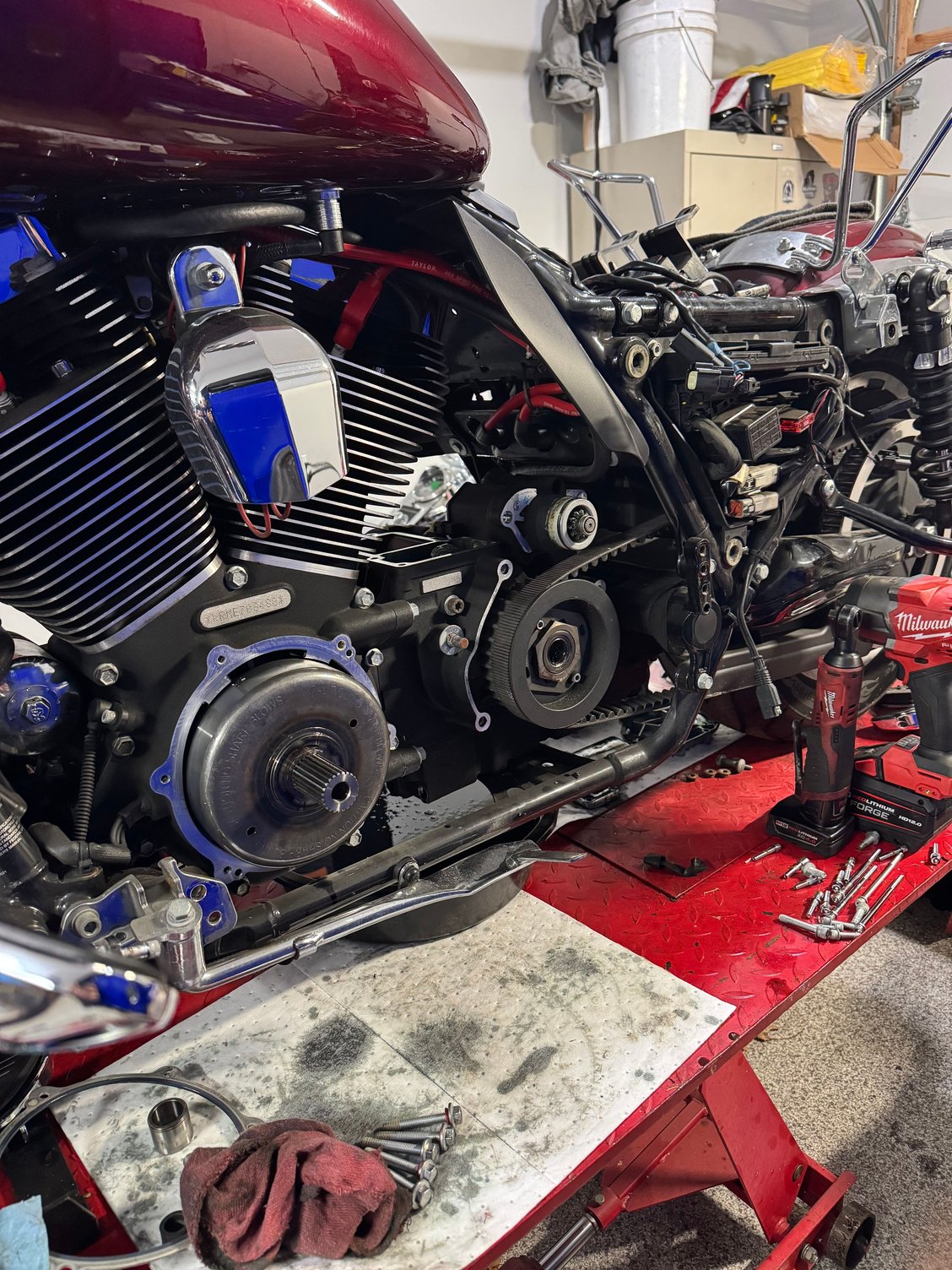 My task is replacing the hydro clutch with a Road King cable setup. But I figured hell might as well add a Baker shift drum while I’m at it. So far got all torn down, got the new cable ran, swapped the Street Glide switches over to the RK switch pack so I don’t lose cruise control. I also picked a brand new 2023 (well 900 mile) M8 clutch assembly, so I’m also swapping that in. Forgot about gaskets and oil so I have to order more stuff.
