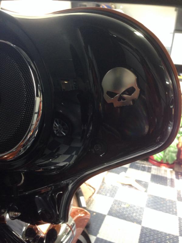 On the 14s the space where the stock mirrors are pretty flat so you can do just about anything to cover the holes, some use caliper inserts, I used the Willie G Skull medallion, Harley has a few stick on goodies that are small enough.