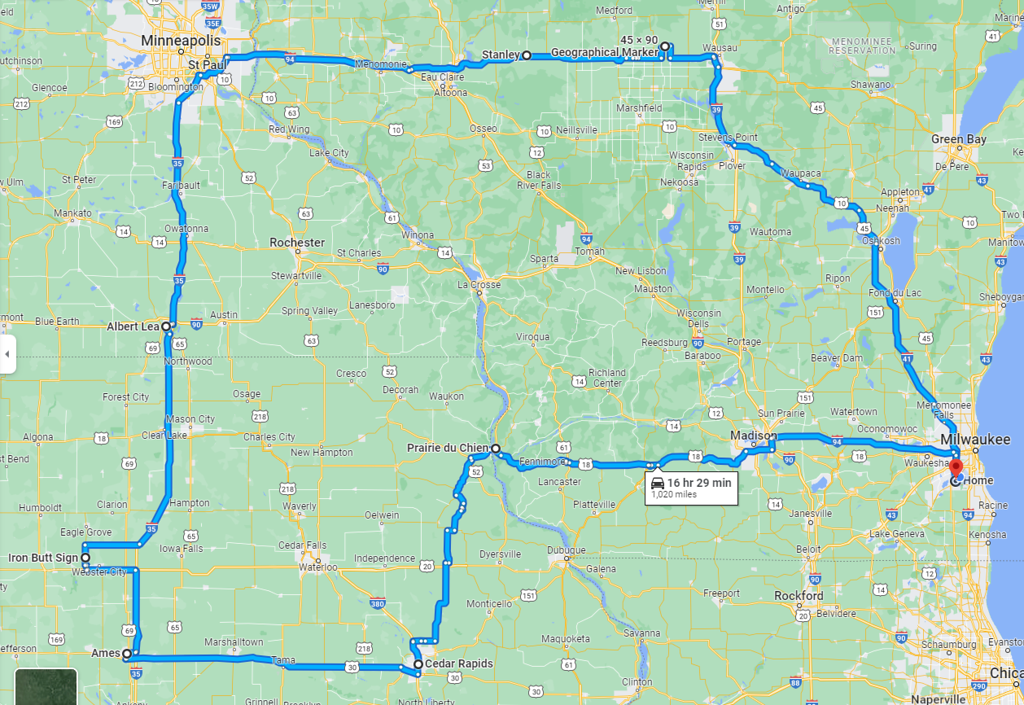 Also stopped at the 45/90 Marker in Wisconsin and the Iron Butt sign in Iowa.