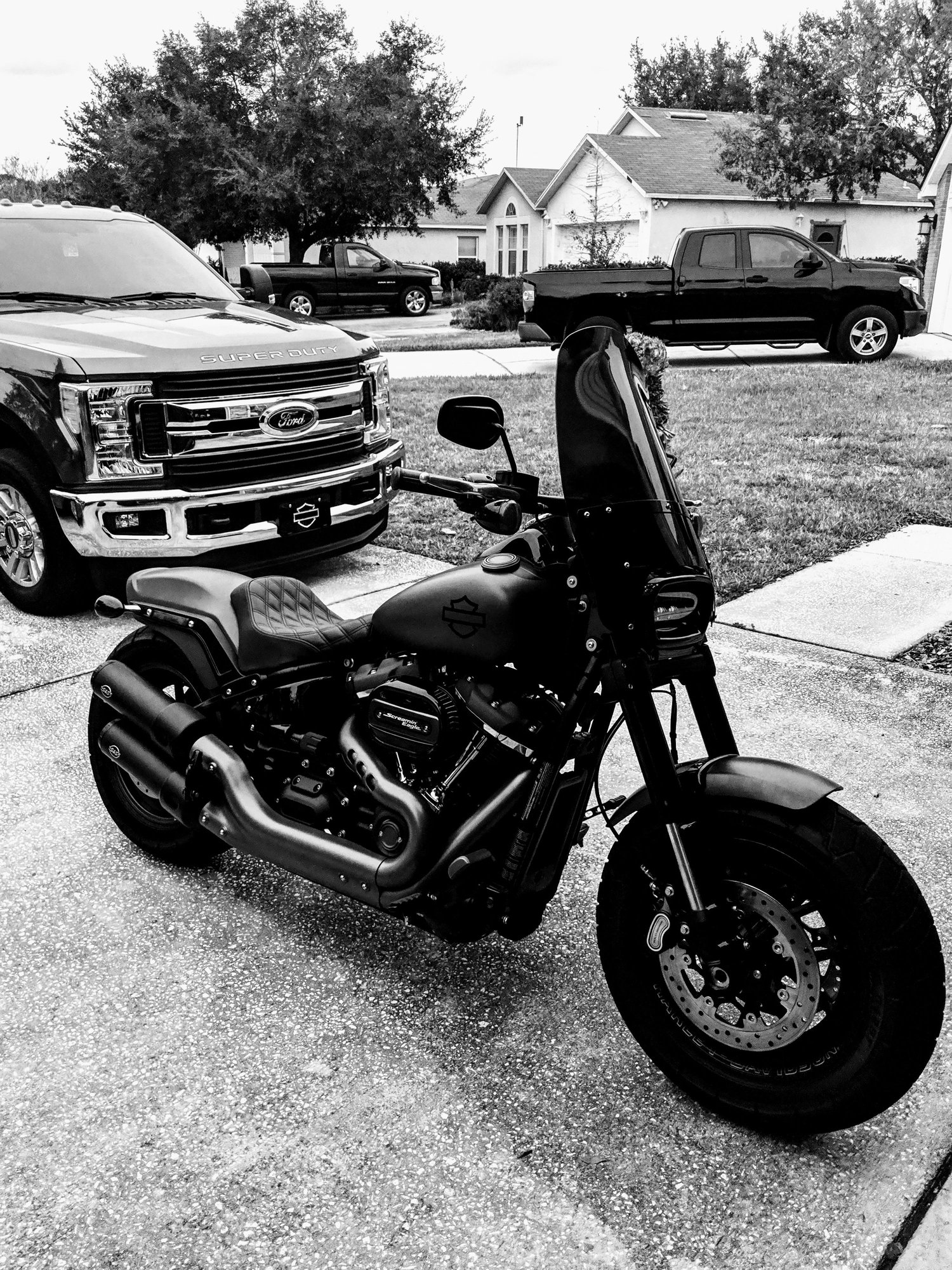 A very rainy and humid day for the last day of the year here. Bored out of my skull so I swapped out the slip on's (Vance & Hines Comp's replaced S&S Grand Nationals) and heat shields (HD black kit replaced the OEM bronze pieces). Cleaned up the bike more to my tastes.