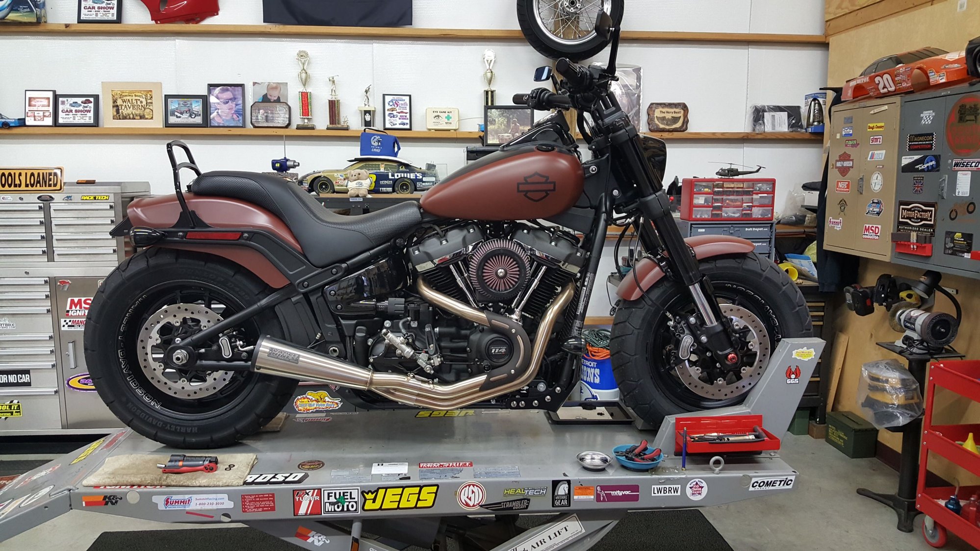 a beautiful m8 fat bob installation with black factory turn signal standoffs. Our optimized fat bob design is now 25% stiffer than the original. Kits are available for the m8 fat bob, street bob and slim. Ride safe.