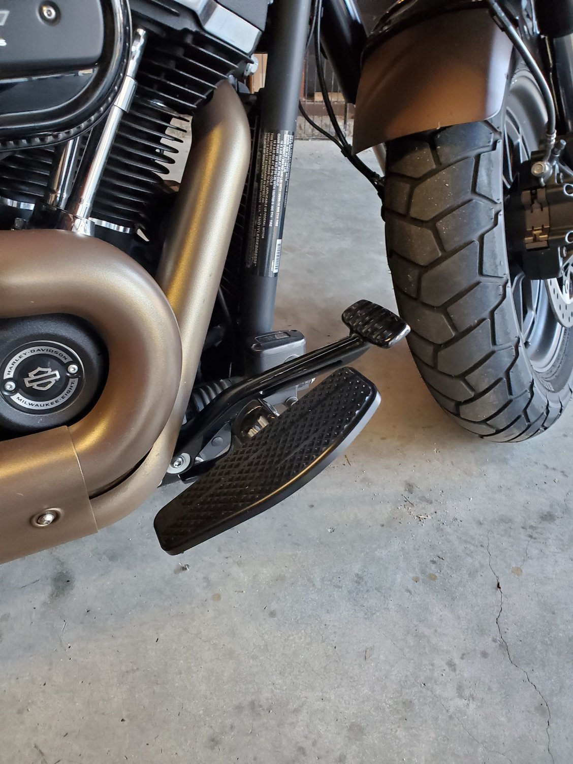 Installed the Thrashin Supply footboards today (got them for Christmas). I set them at a comfortable angle, and it seems like the brake pedal should be higher. I moved it as far as the stock components will let me. There are only 2 threads left at the back of the master cylinder post.