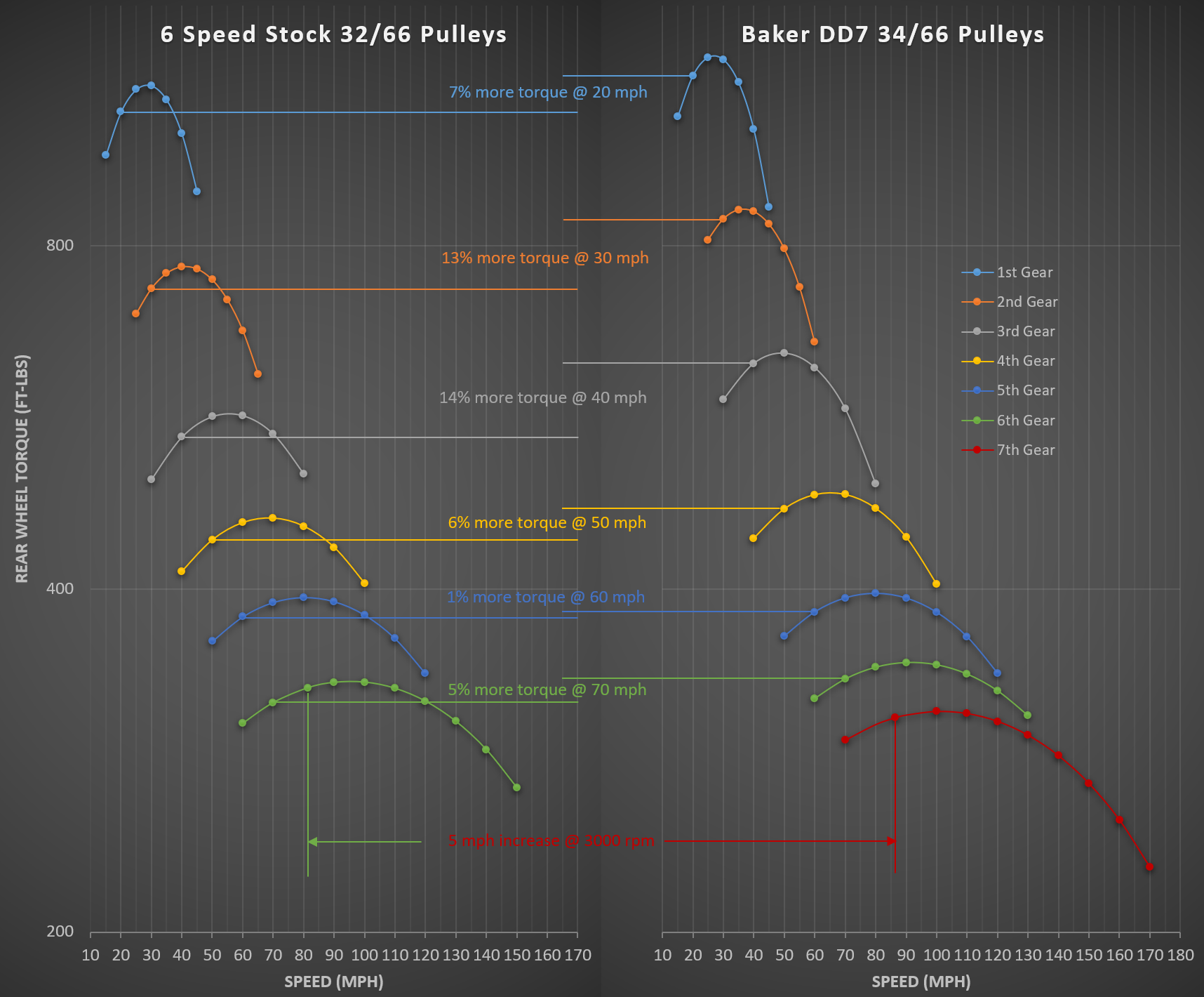 Yea you can optimize the gearing in the 6 speed to get what you want in that 80 to 110 zone but at the cost of losing some acceleration. With the Baker you can have both. Hulkss chart is excellent. I wanted more power so I went the stage 3 route in part for warranty. No regrets but each has its merits. Ideally naturally is to have both.