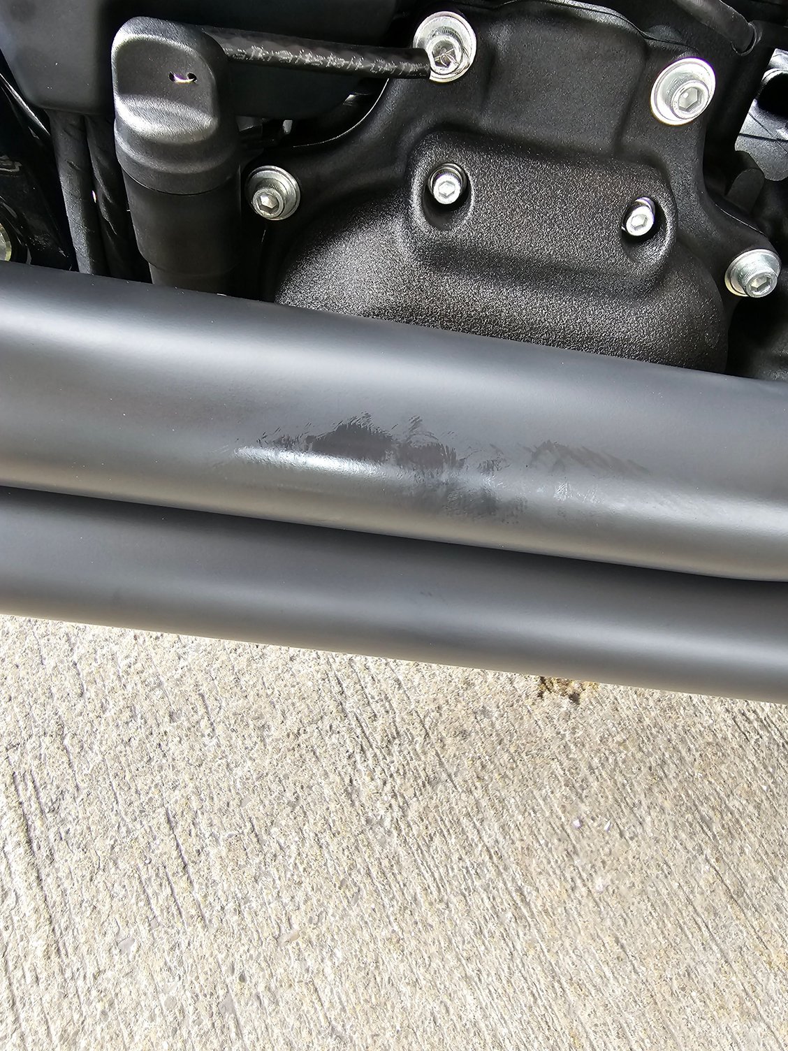 I noticed afterwards there was some oil mist on my exhaust headers right in front of the transmission cover but also closer to the front of the pipes at the bend.