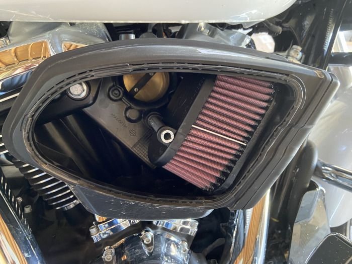 I've since switched the Cannons over to the Road Glide and I added the SE K&N filter for the 117. This time I did a tune with an SE Pro Street Tuner. All I've done so far was put in a base tune,telling it I have the SE mufflers and SE intake. Like with my Road King, I didn't expect any change, but it was there. It actually surprised me. I didn't have to look for it. The motor definitely felt a bit more perky with the tune.
