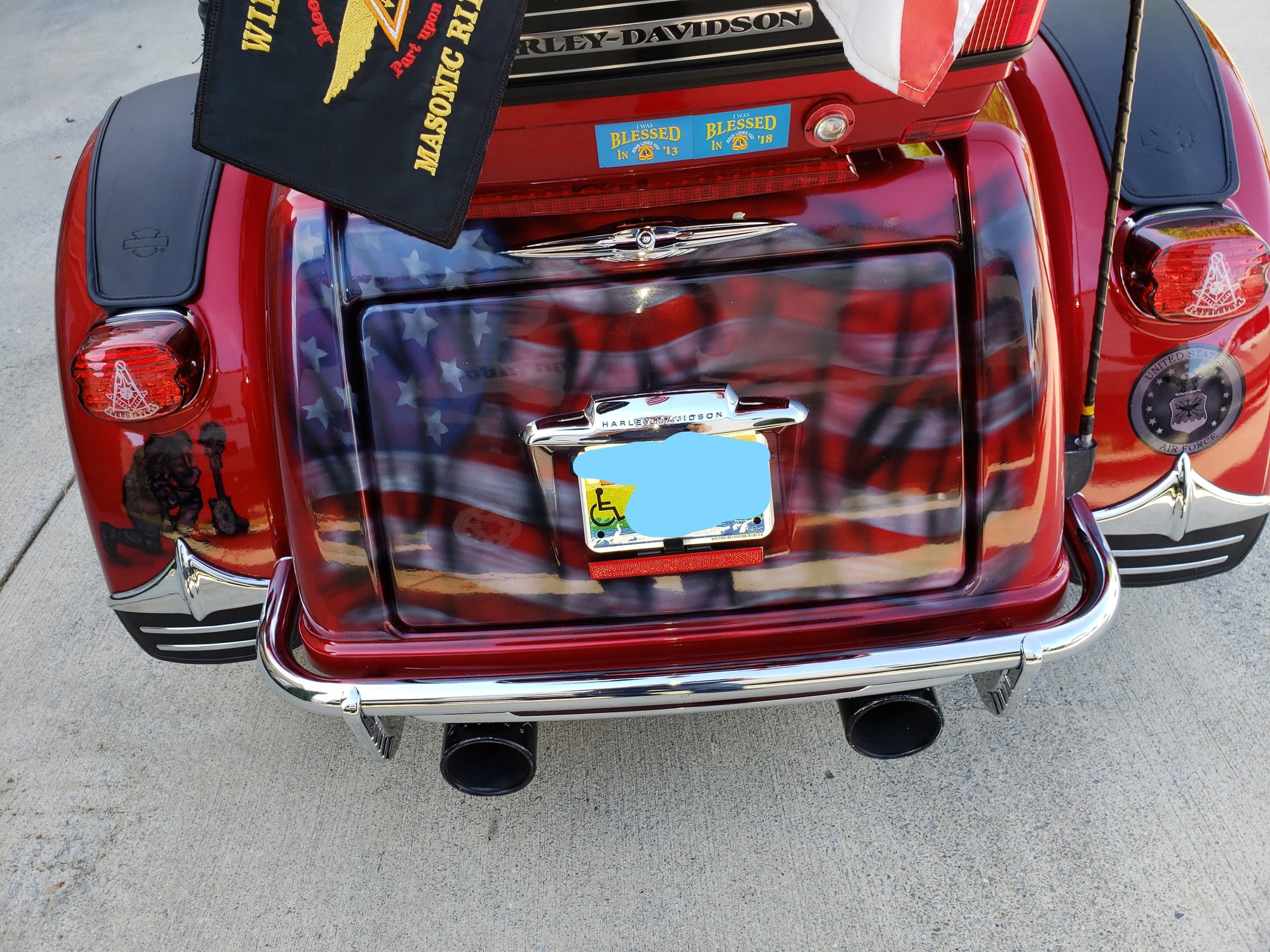 I am looking to upgrade the Air Shocks on my 2012 Tri-Glide does anyone have any suggestion? Someone posted in this forum "why would anyone want to lift their ride?" I have a problem with dragging my pipes when loading or unloading the Trike into my Toy Hauler and on speed bumps and need to lift it JC Baggers said that their shocks can lift 1100 lbs but didn't say what the lift was. I only need a couple of inches. Plus being able to adjust on the fly seems like a great idea for a trike. Hard to see here but pipe ends are ground flat from dragging.
