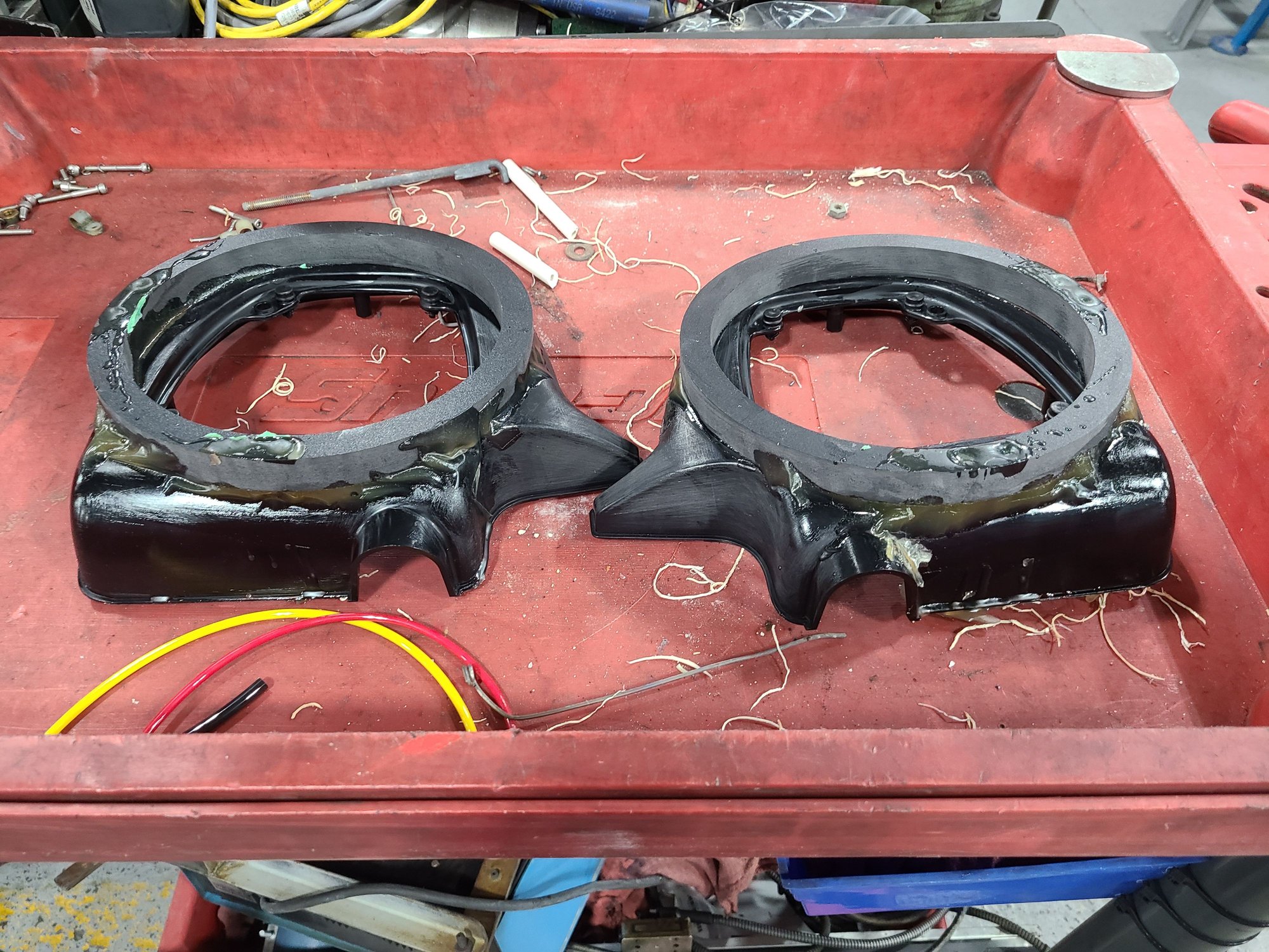 Started with stock gloves boxes. Some fiberglass, resin and bondo and turned them into 8" pods.