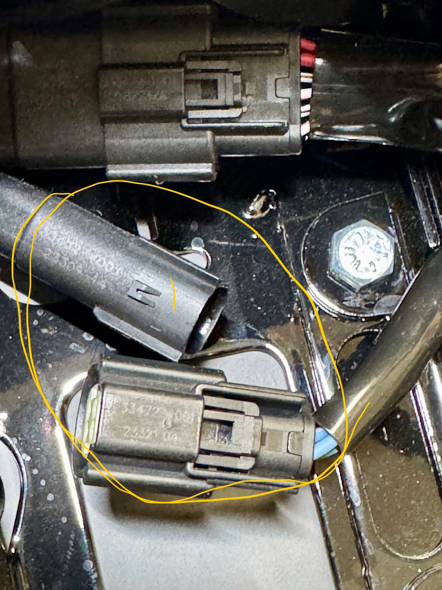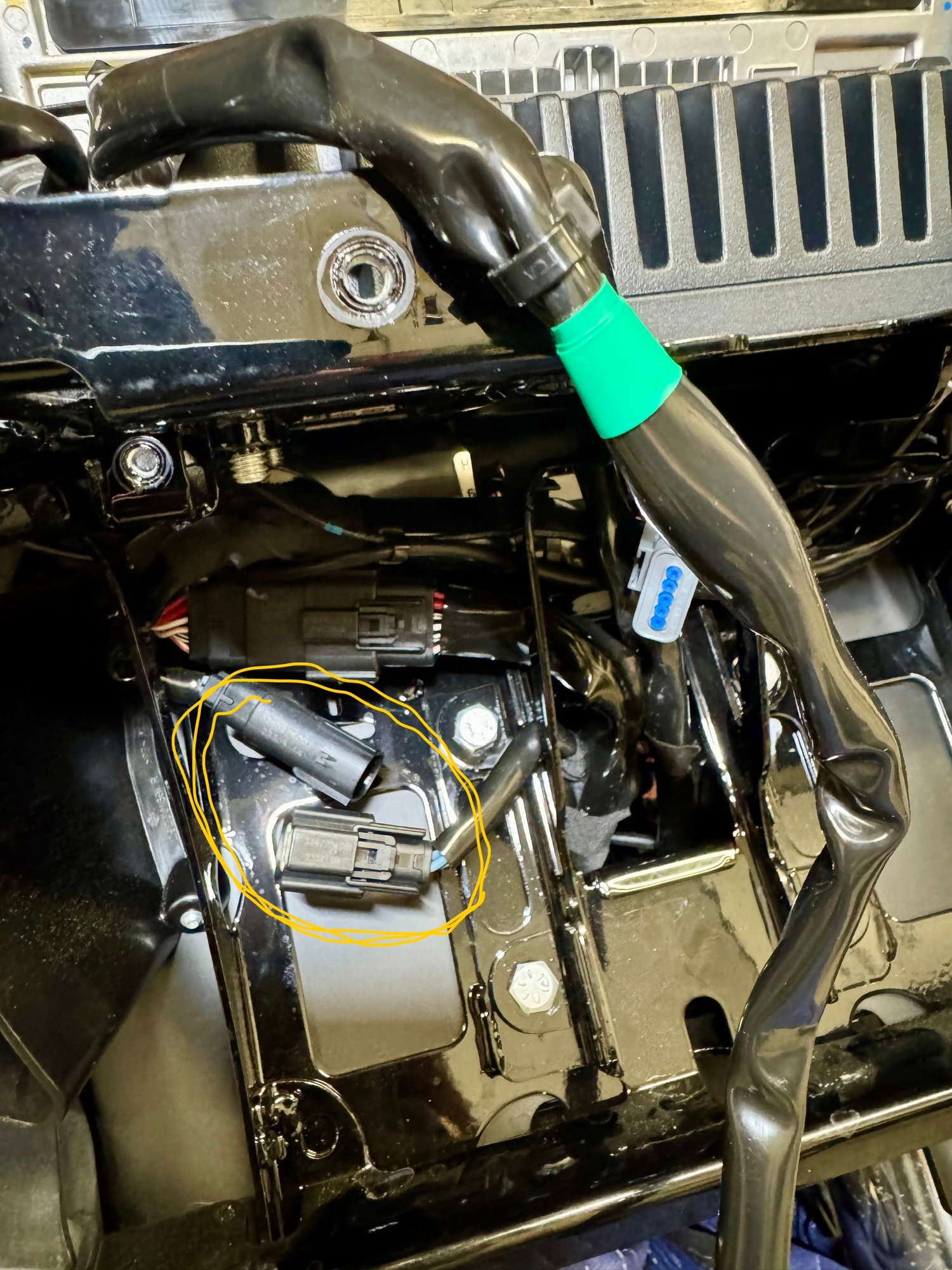 here are the pictures.the connector is circled yellow, and i disconnected them. I yave not connected the lower fairing y- connector yet