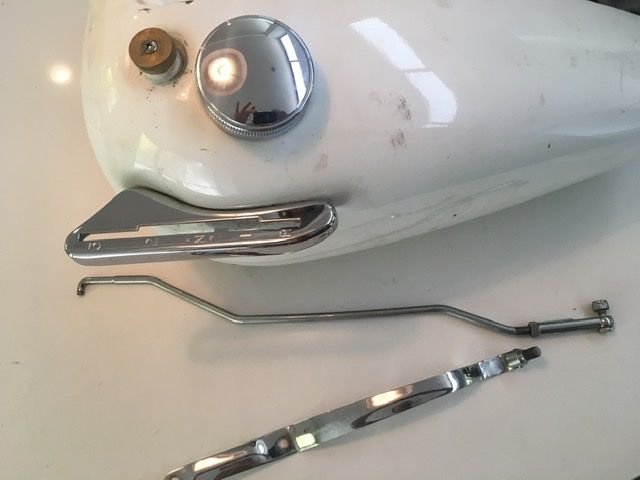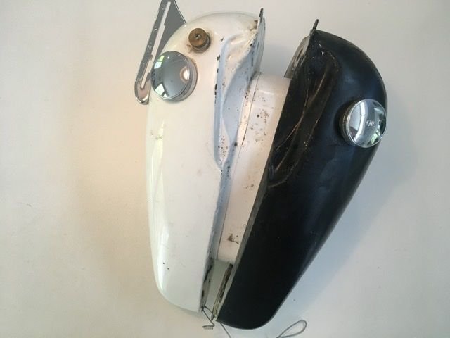 - Fuel/oil tank with xclnt shift rail and shift hardware. The Fuel side if very nice, could be og paint. The oil side rough, but no leaks or cuts (it works): $400