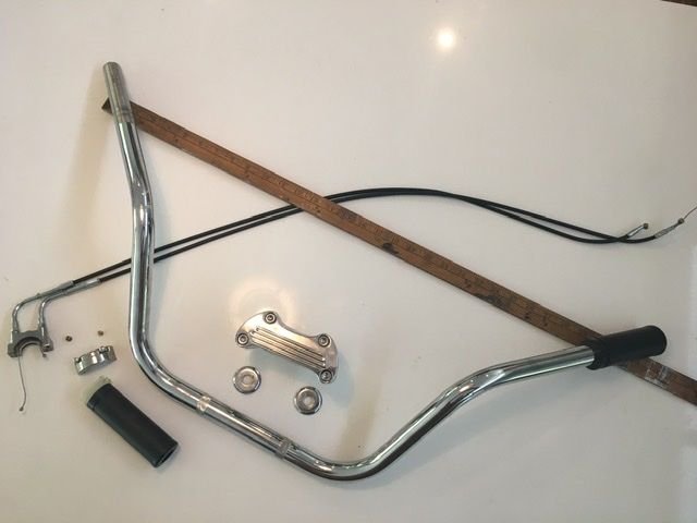 - aftermarket 1" Handlebars (33" wide and approx 7" rise) with riser and hardware, 2-cable throttle grip (complete) $70