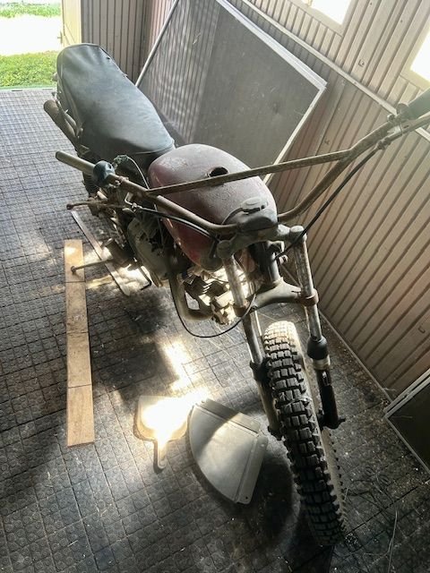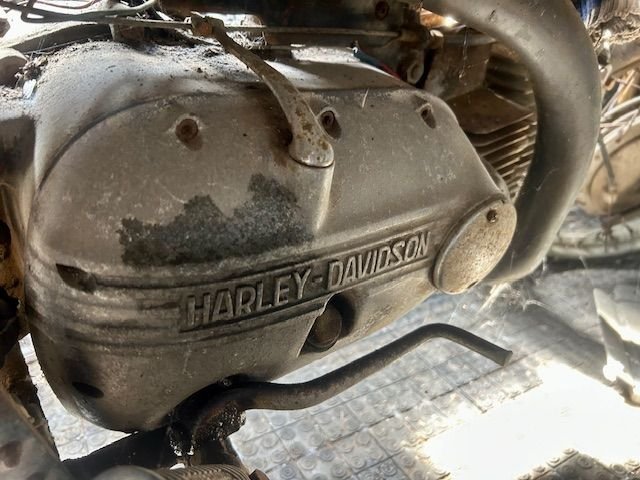 I know it's a Sprint. I don't know year or CCs. Looks like early 60's, maybe a 250? Maybe you can google Harley Davidson Sprint and see if any photos match? This bike has been heavily modified, so you are looking for motor and frame pictures.