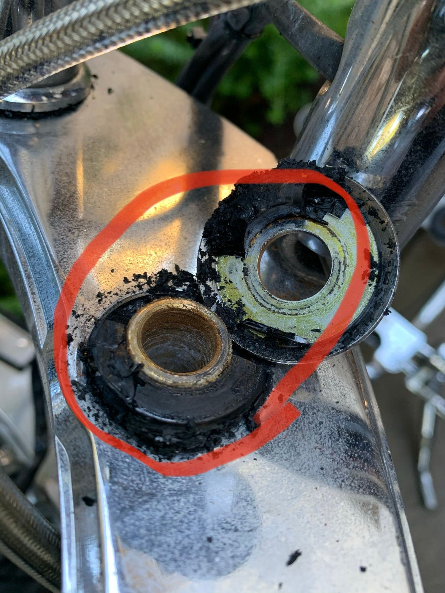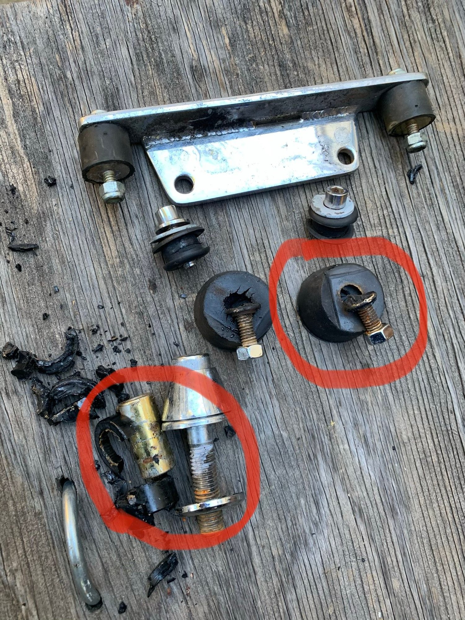 I’m trying to find the rubber mounts marked here in red circles, they are for the swing arm and for the handlebar..