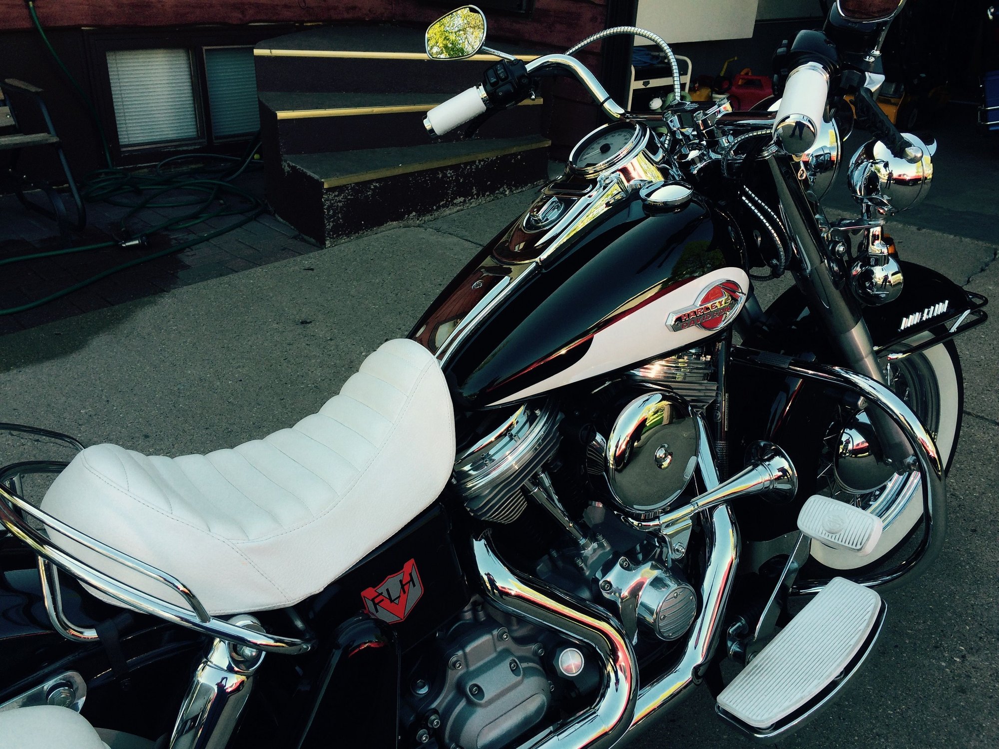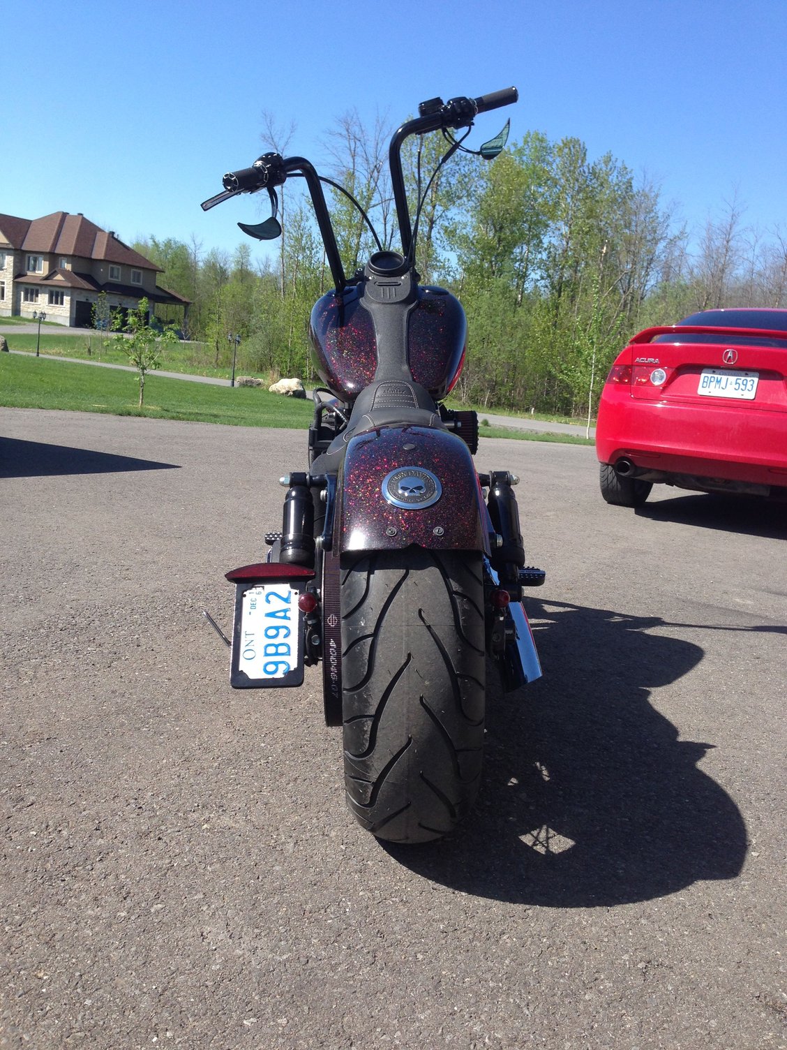 Evo era Fat Boy/Road King bars. Reused the stock Street Bob control cables. Much more fun to ride with that the original 10" mini apes. They just didn't look right on this bike.