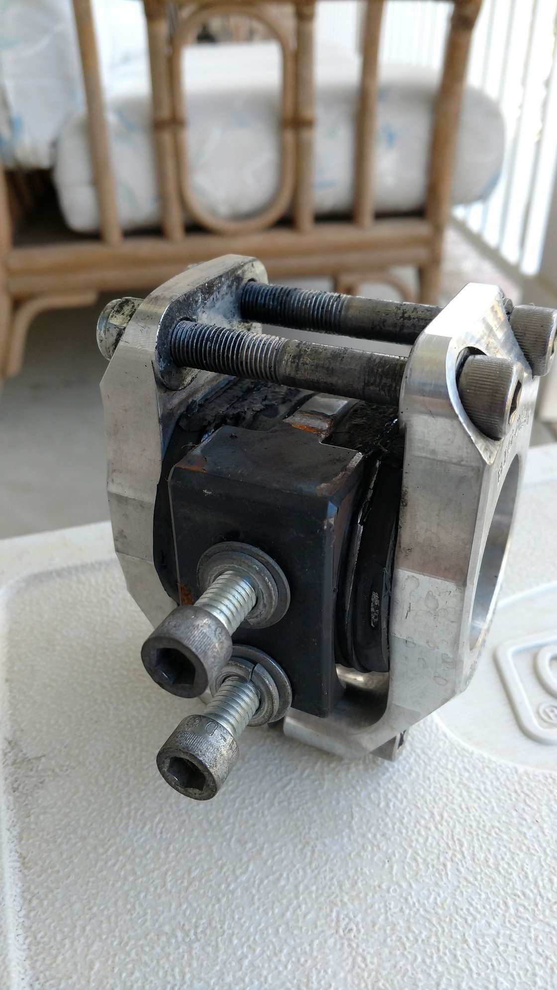 I finally re-found the mount after some digging through boxes. The mount looks like there wasnt enough clearance there and just rubbed the top of the rubber down to where it is flush with the metal in the center of the mount.
