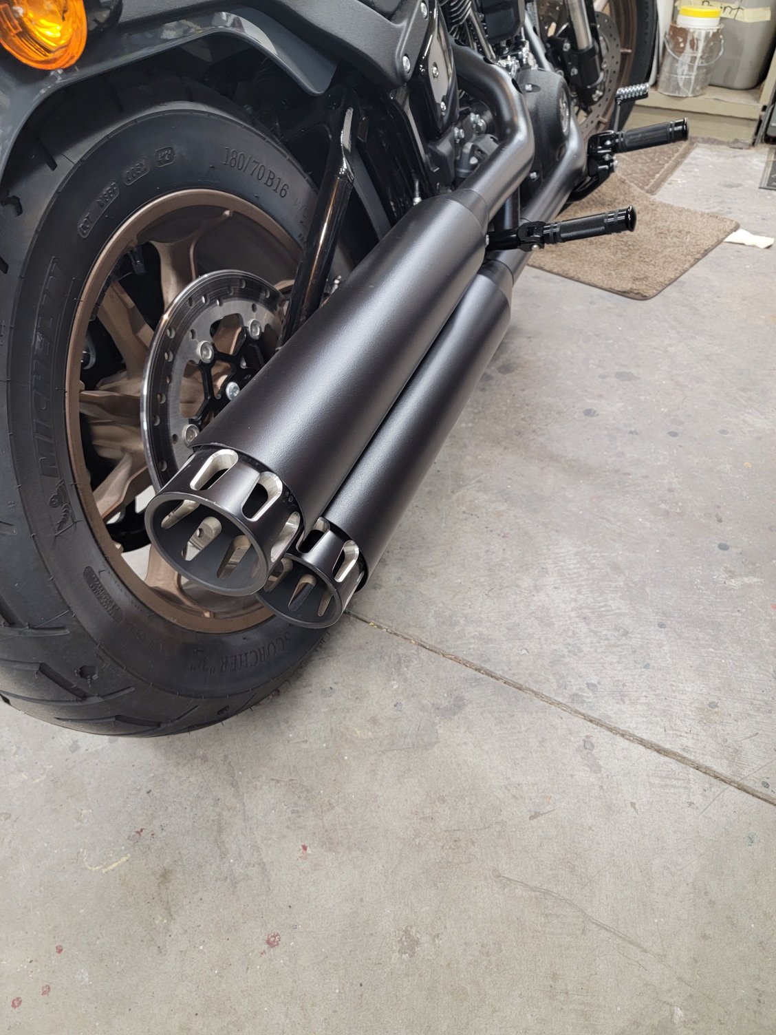 I ride a really cool 2010 Dyna Wide Glide with Stock Drag Bars and 5" straight black risers. I really don't want to go ape just need a little pullback. Harley has what I need in chrome but I really want to keep the black scheme as much as possible. I have looked high and low on the internet and Harley has no answer insight. Any thoughts. And whats up with the manufacturing community. I guess they never heard of a 1 1\4 inch clamping area. The search always reveals a 1 1\4 inch riser but in all it is the thickness of the riser not the clamping area. DUH! And just for info. when I purchased the bike in April/2014 (2800 Miles (9800 now) it had the stage one and Scream'in Eagle mufflers. Sounded like a cheap *** lawnmower. Took a lot of crap from the crew but did not want to spend the money so soon. I added the V&H Slip On mufflers and this was a great improvement but did not impress the crew. I have now replaced the baffles with the competition baffle offered by V&H and I got all the rumble I could ever want. I wish V&H would sell slip on with competition installed. Go figure (marketing stratagem) If the crew snubs my bike now. They can Kiss My ***!