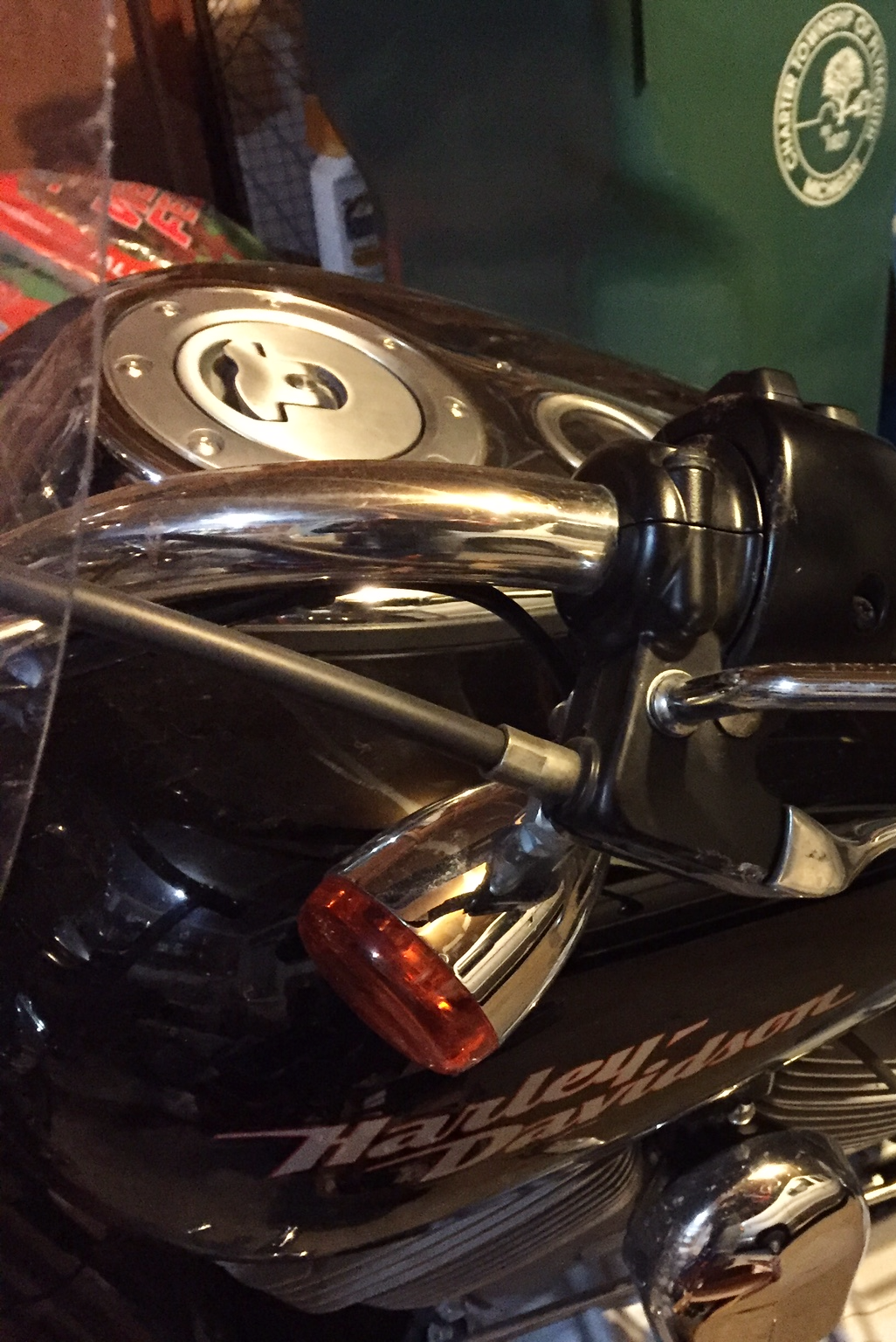 In the garage (this is already starting out bad, eh), I moved the bike a foot or so forward to get at the lawn mower not realizing I'd moved the kickstand to the unlocked position - you can guess the rest.