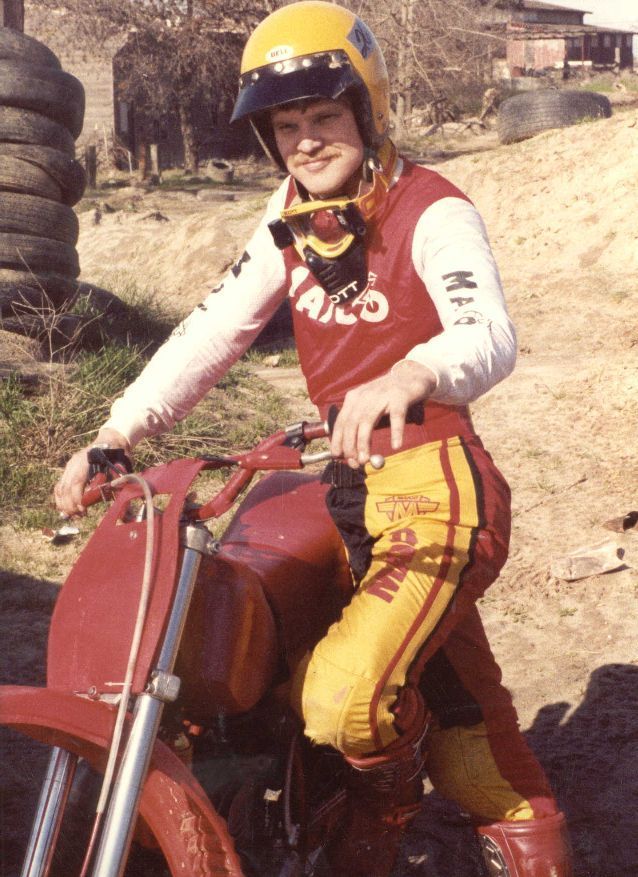 The first is from about 1974 or 1975 on my old DT250. Next is from 1978 on a Kawasaki 650 with my nephew in a slow race during a club event at the lake. The one in off road gear was from 1980 again with my nephew. Last one was from last summer that my wife took from the house when I got home after a ride.