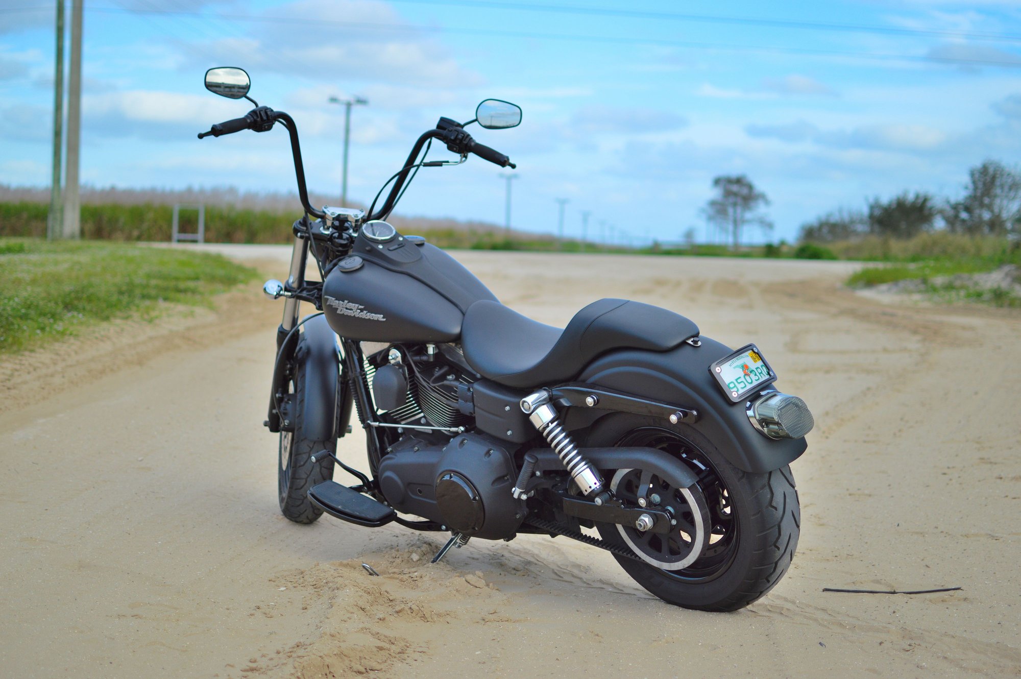 2008 FXDF rear wheel with a 16x3 hoop laced to my stock front hub. Swing arms are the same so I swapped my '07 axle, spacers, caliper for the newer '08 version. You will need the newer two piece rear caliper for the smaller 16" wheel. The 2007 one piece caliper/bracket is a nightmare with the smaller wheel.