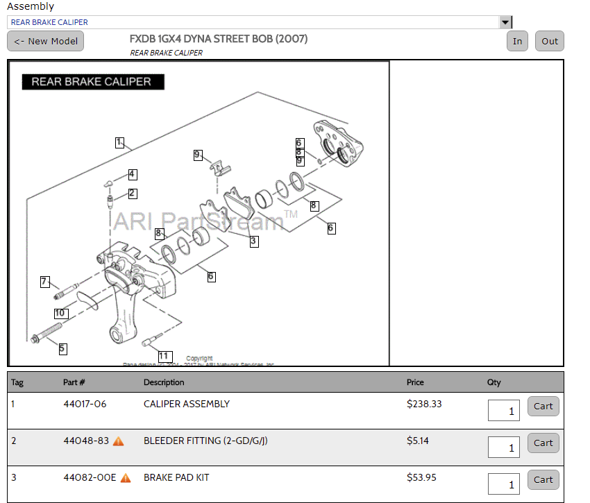 Do you have the part number of or know what model the two piece caliper came from. I installed a 16"x5" rim in the rear and using the stock rear caliper from my 2010 Street Bob was a PITA to get all together. If I can simplify this process when I do my next tire change that would be awesome.