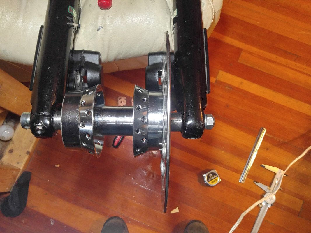 Anyway, for those curious and for my reference later. This centers the tire/rim in the forks so I don't need to offset the rim when I lace it and it sets the rotors in the centers of the calipers Custom spacers and hub required.