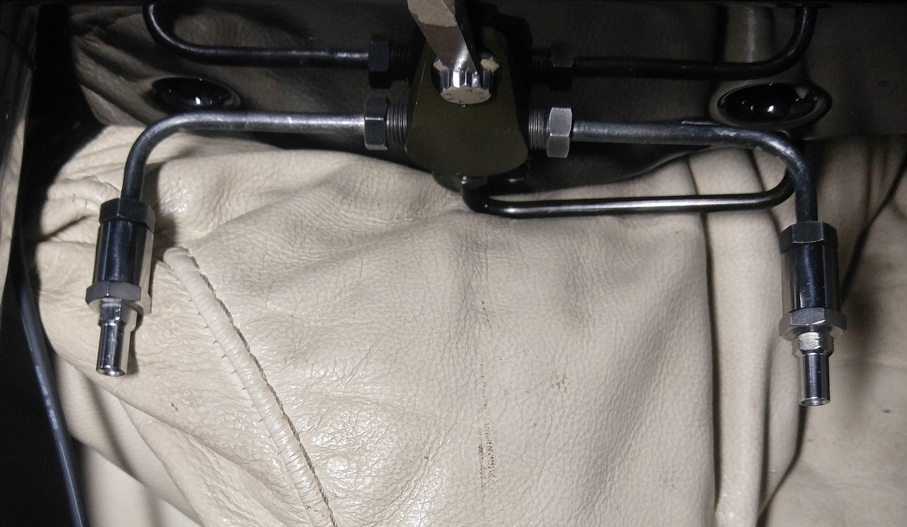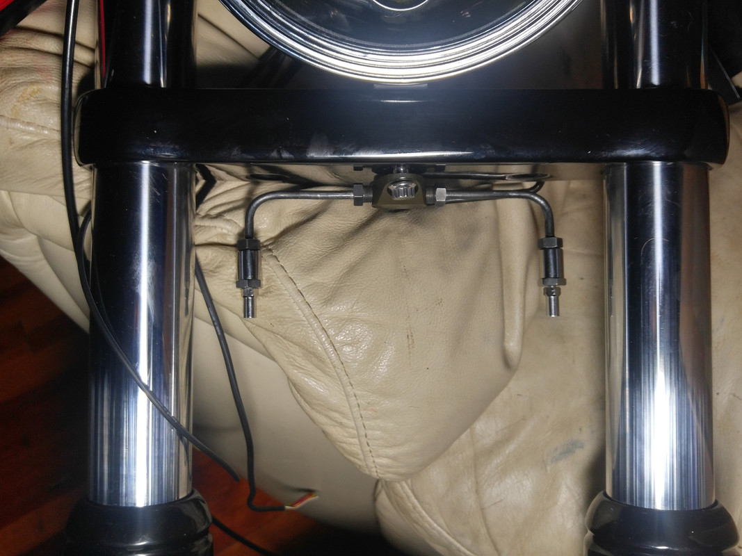 Started playing with the front brake tee, too. Nobody seems to publish the dimensions for their bent tube lines and I can't find straights with 37 male flares, so I guessed. It sucked, so I rebent them. Still sucks. :/