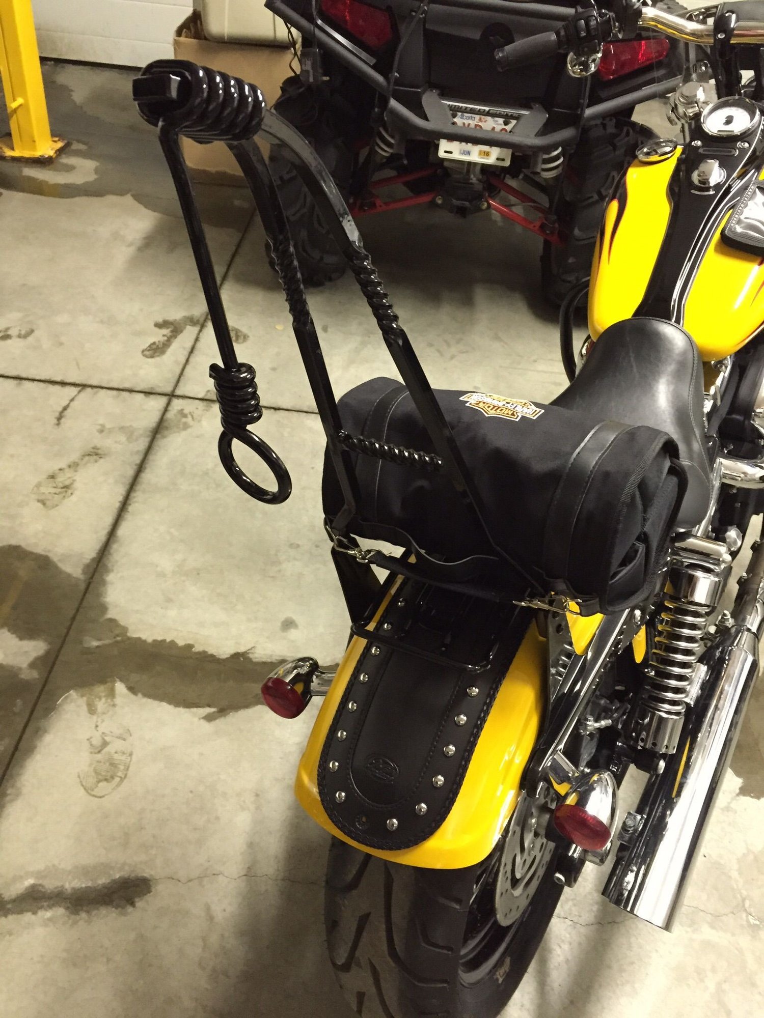 stopped in at the local Harley dealer and was interested on getting a detachable sissy bar for my 16 street bob only to find out that we have to relocate the rear turn signals for clearance. He was explaining some guys change the "neck" where the signals connect to the frame and it does the job without relocating them. Has anyone seen / done this? if so do you have the part #'s