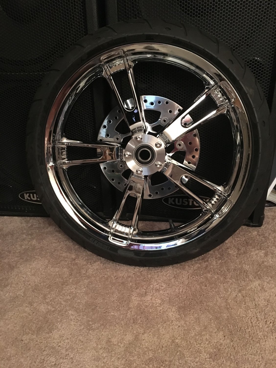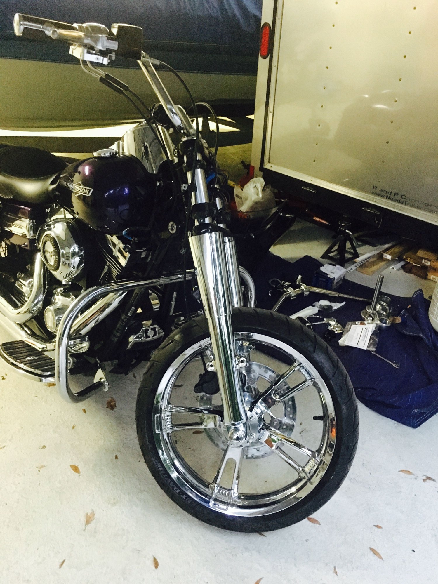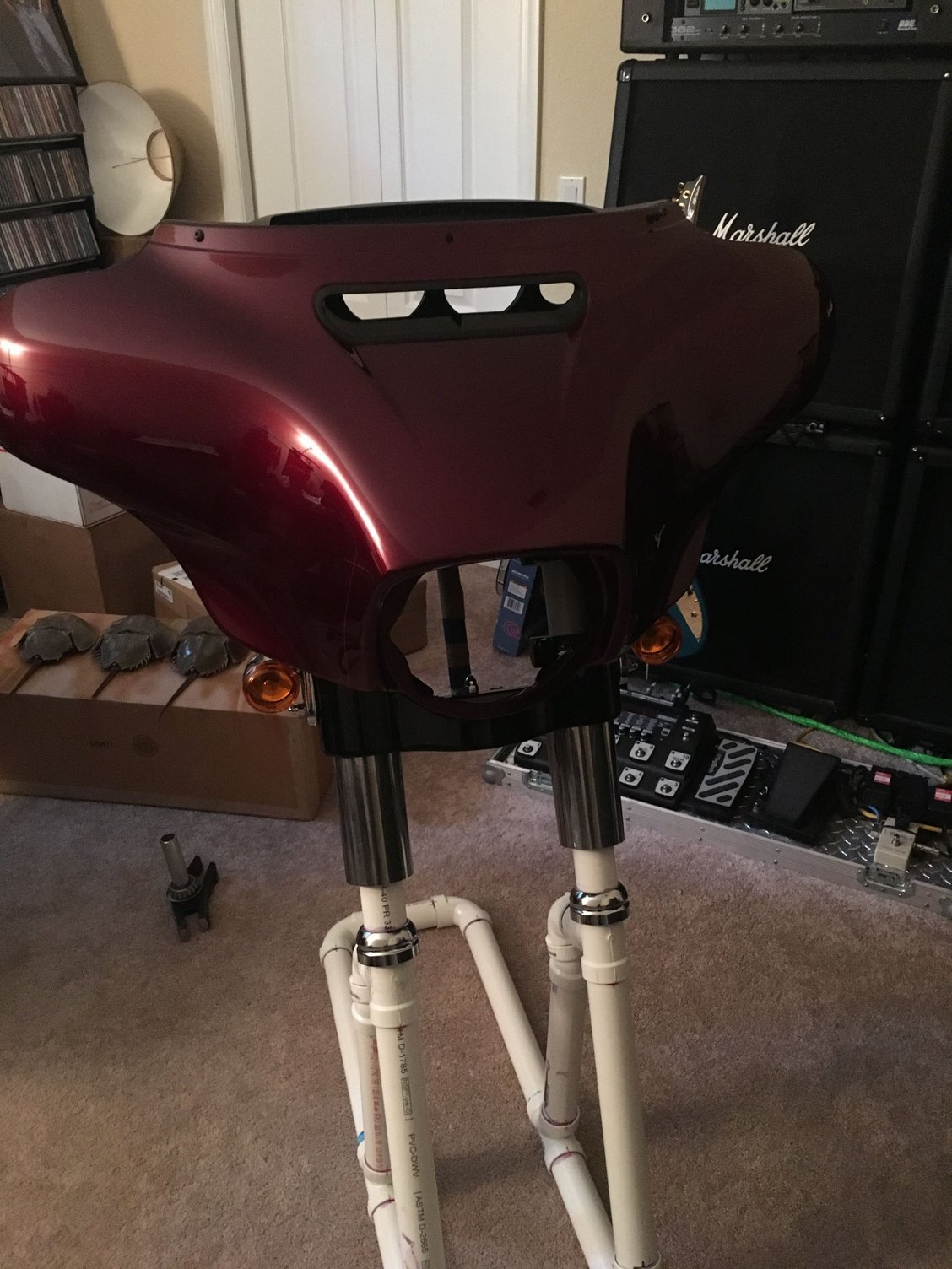First test fit of fairing .. To attach fairing I picked up a used 2016 triple tree on eBay and cut the 4 clamps off of it flipped sides and installed upside down to get mounting points where I needed them .. Notched top triple clamp 1/4 inch so mounting piece would set at right height from top of tree