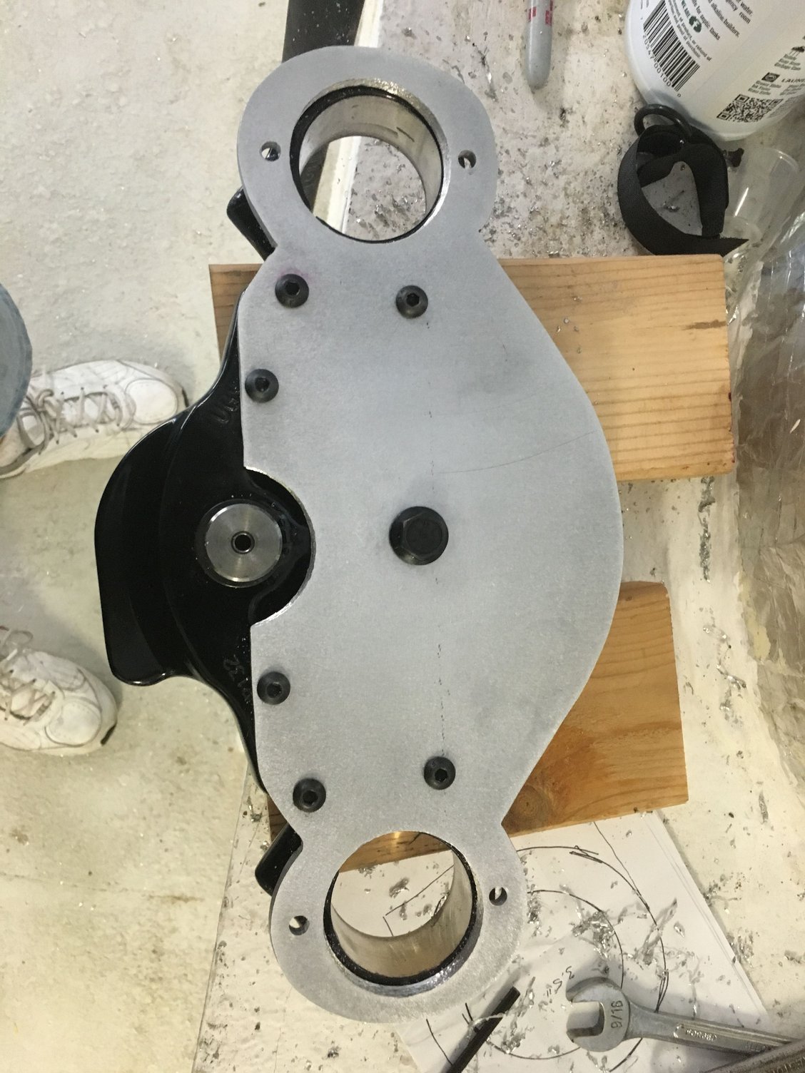 Here is the plate I made to attach cowbells to triple tree. I extended it out to fill gap between trees and skirt for a cleaner look . I did have to grind a notch in bottom of trees for cowbell bolt to sit into