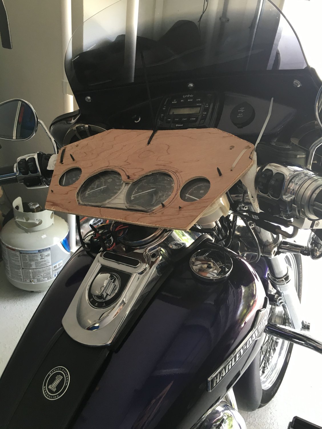 Old guage removed hole was filled with touring fuel door cover . I made a plate that covered bottom of hole .. Attached with two screws and push button to basically sandwich it on ... See below