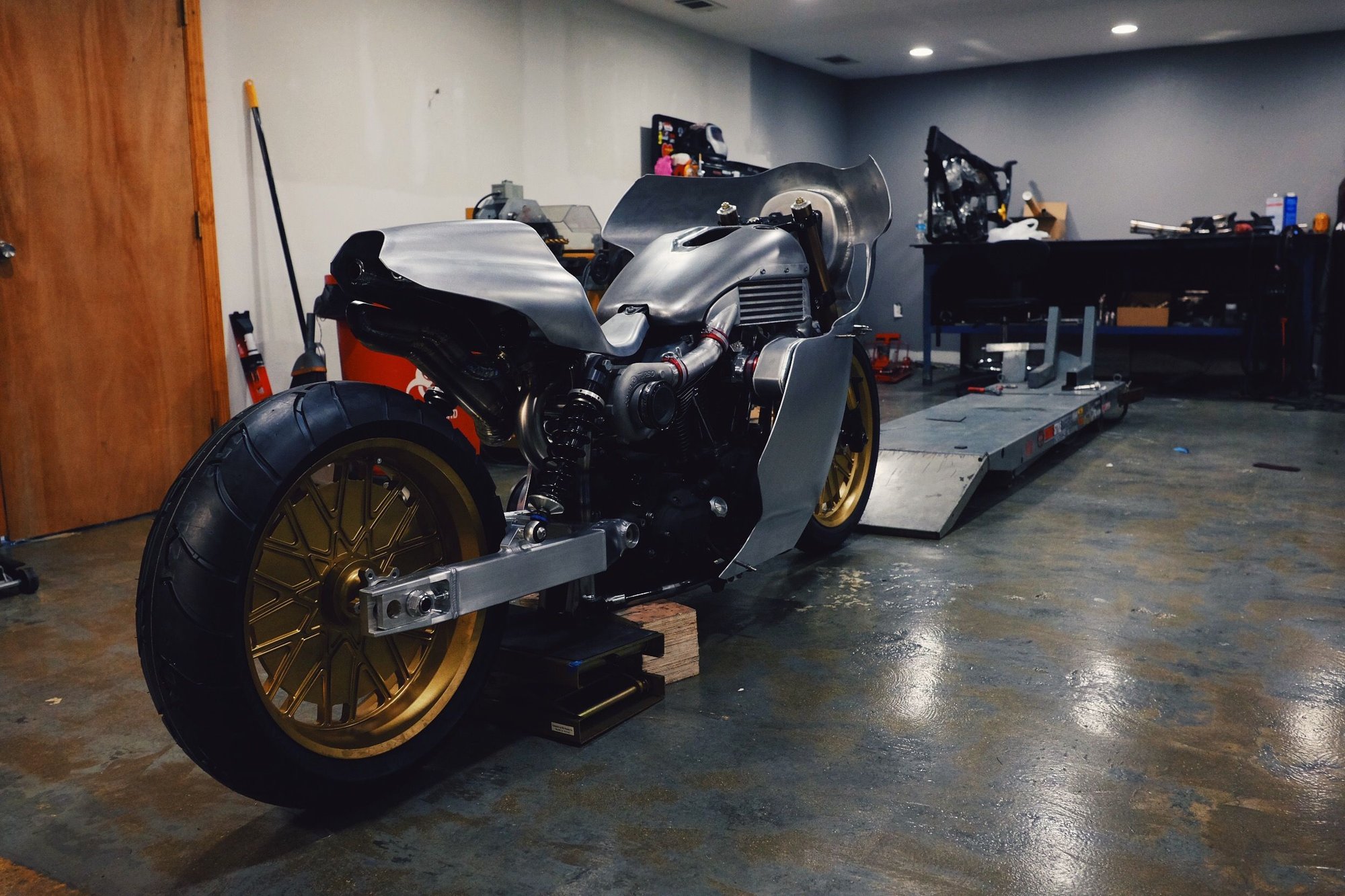 Some glamour shots from when we finally had the body worked dialed in and got the bike on the ground. Still a lot of little things that need to happen with the bike in this stage, but you get the main idea of what we were aiming for.