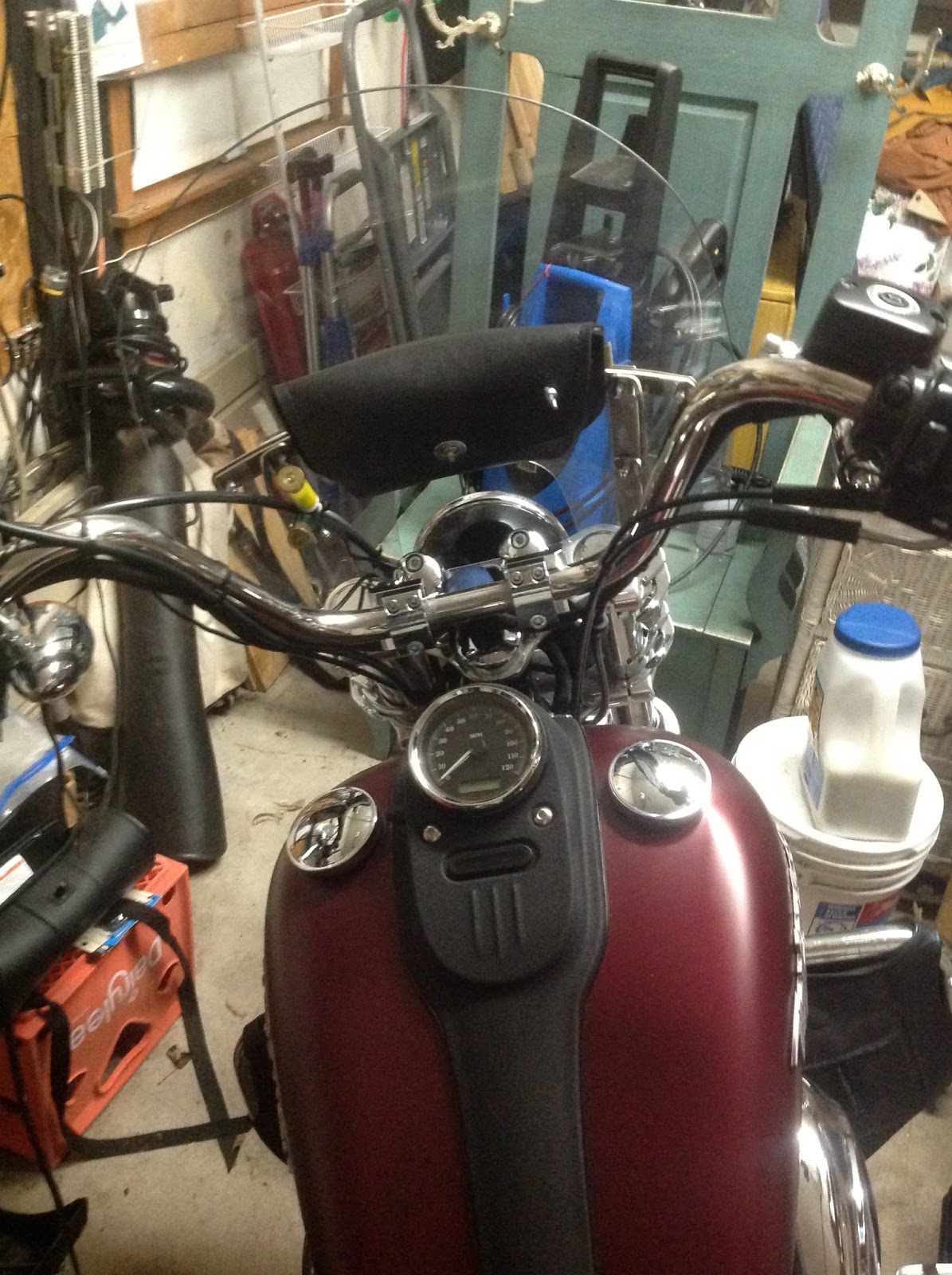 I know that it's too late now but did the idea of reversing your stock risers 180 degrees from the factory setting ever cross your mind? This would have moved the bars back at least three quarters of an inch, maybe a little bit more.