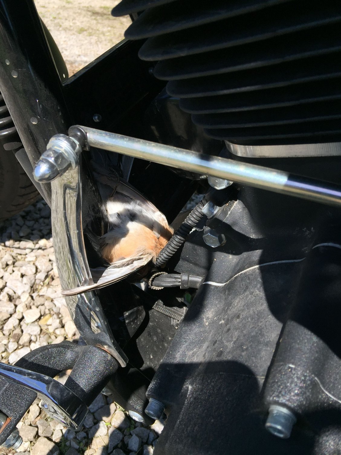 Always a possibility of a dead critter being somewhere. I found this little guy after I got home from a ride one day last year.