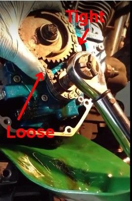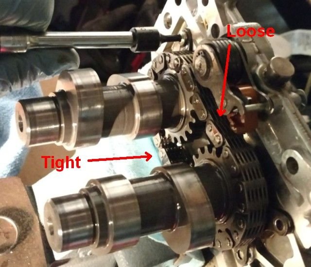Hey Multi - Thanks for taking the time to illustrate your point so well! I appreciate it a ton! And yes, I understand what you're saying... It makes sense that the position of chain slack would change depending on the nature of tension at any given time... But it shouldn't make that noise... I also get what you're saying about the tensioners not having pressure right now, but I can hear the noise when it's running. There is a very noticeable metallic tapping coming from the cam chest that must be the same sound... That's what caused me to start poking around...