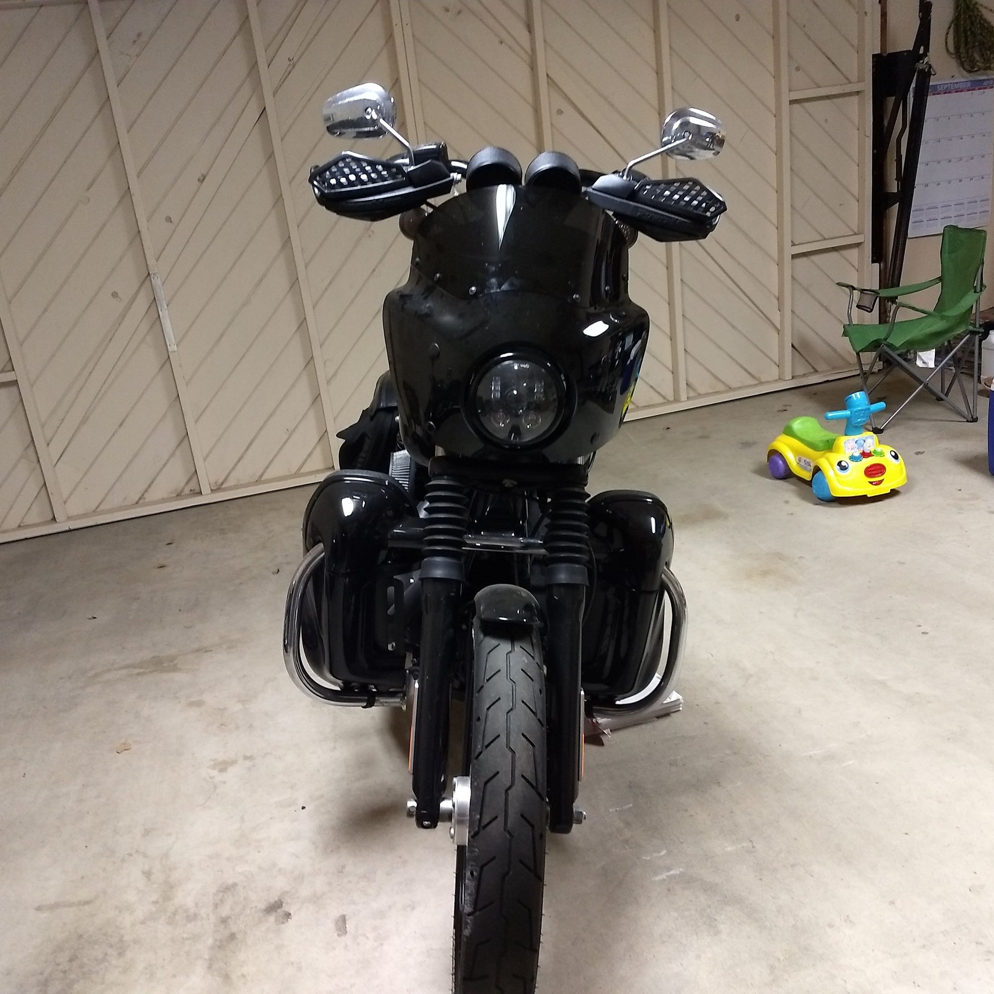 I like the clean look with the gauges on the dash (although the FXDL dash bezel looks like cheap plastic and I'm hoping to remedy that this winter...) but when wearing a full face helmet, I can't see squat down there. Gas light comes on, might not notice until its too late.