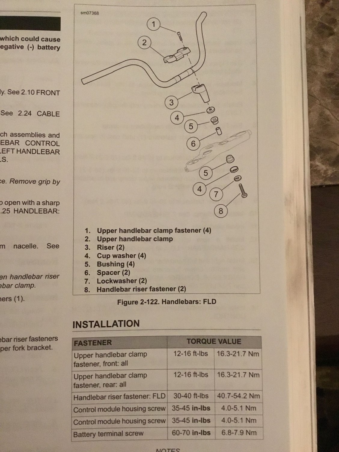 Due to my not so good tech skills the image didn’t come through correctly..page 142 item 8. Above the all models section says “Tighten riser fasteners to 30-40 ft-lbs (40.7-54.2 Nm).”