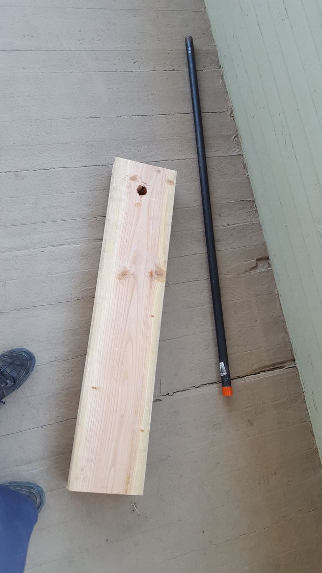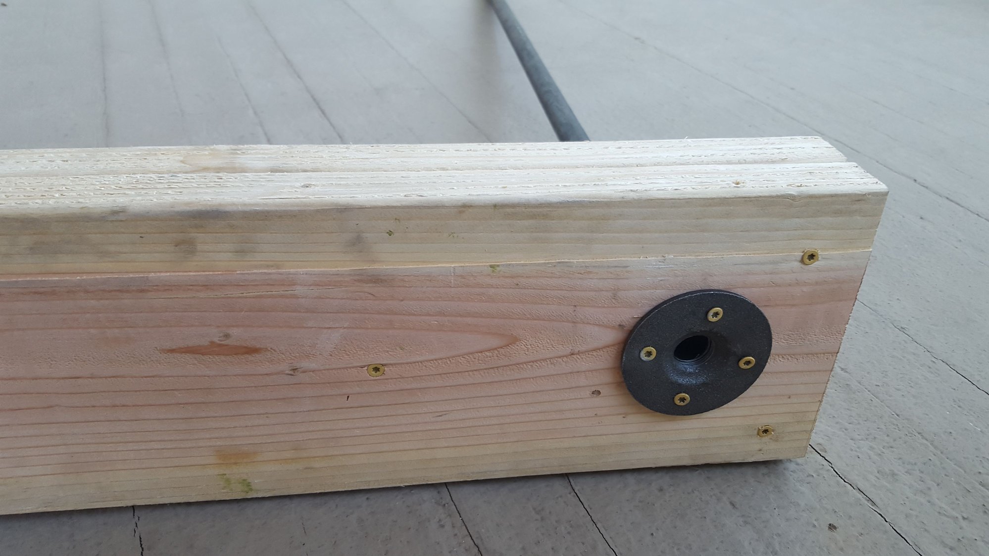 It consist of 2 pieces of lumbar, a 3/4 threadind metal pipe and flange.