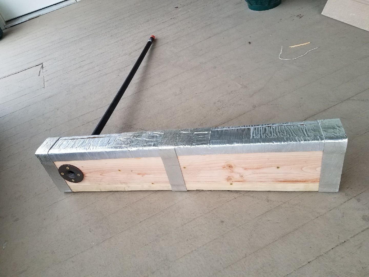 But i got some pipe insallation. The wrap around kind. I wasnt sure how to do it. Used some qll purpose glue to hold it down. Its a big mess! Lol. Was going to try n use it but it started raining. Doh, to be continued....