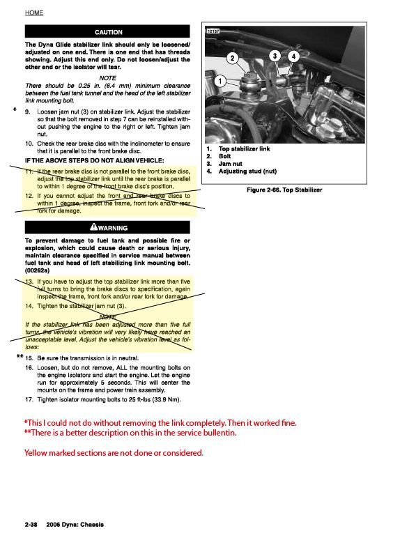 I have enclosed pages from the 2006 Dyna manual, as well as a page from the "M1324 Dyna model vibration".
