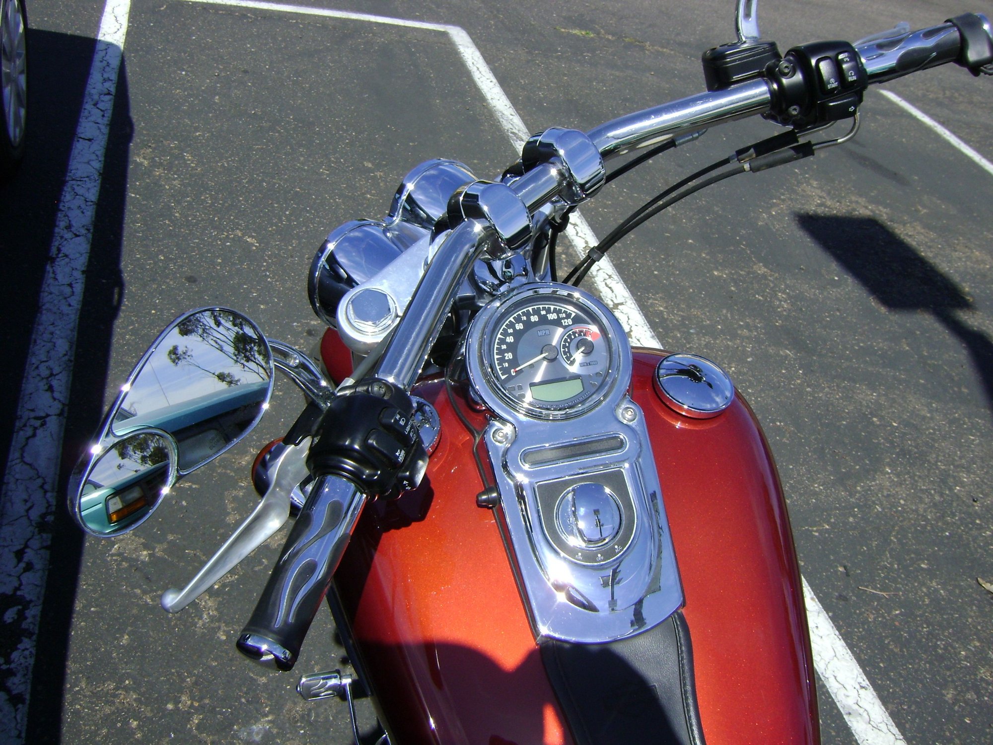 The 06 Dyna Wide I purchased came with a ton of additions that I'm just now digesting through and trying to get it all together in a format that I can understand. Like...WHY?? I posted a saddle (seat) question not long ago, and got some awesome insight from the members here. So, in the aftermarket additions to my 06 Dyna WG, was a combo Speedo-Tach. Very nice but herein lay a problem. The owner also added a pair of 6" pullback risers. Man if looks could kill, this machine would be a slayer. Well except for the fact that the knuckle of the riser where the handle bars bolt on .. hits the aftermarket speedo both turning left and right. It really doesn't hamper the turning radius very much as it seems to hit right at the end of the throw. Never-the-less, there are slight indentations on the chrome ring of the speedo where it has been tapping.