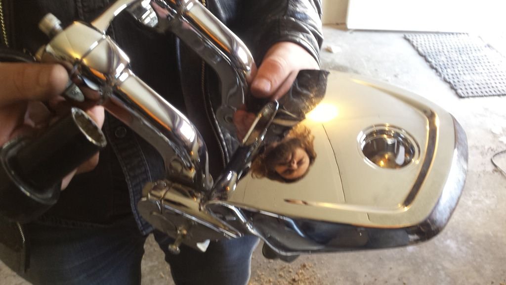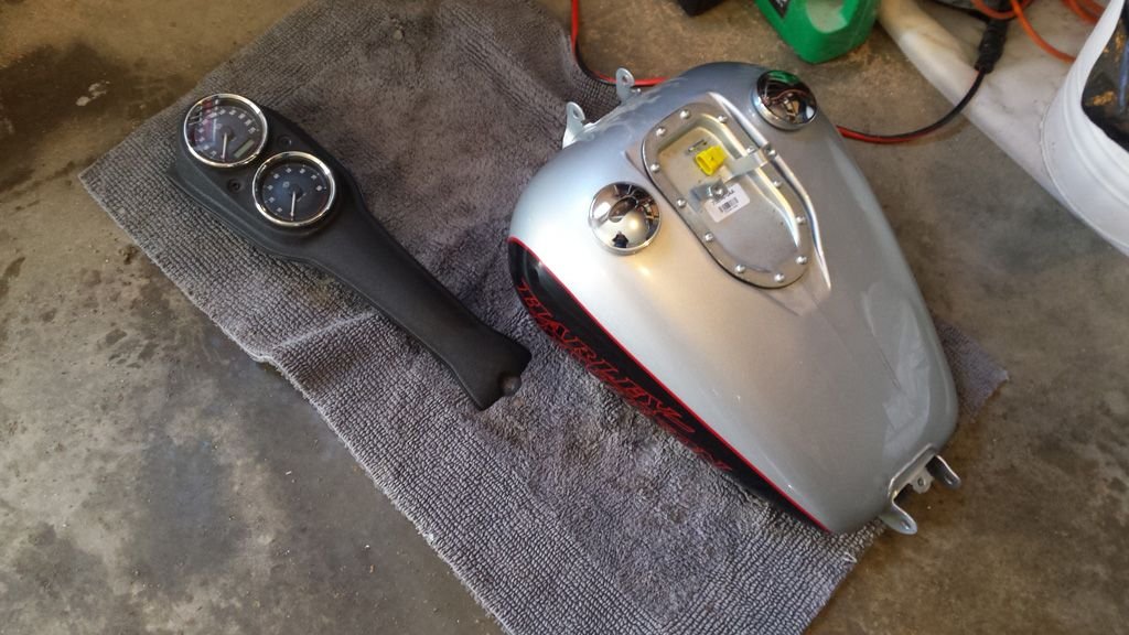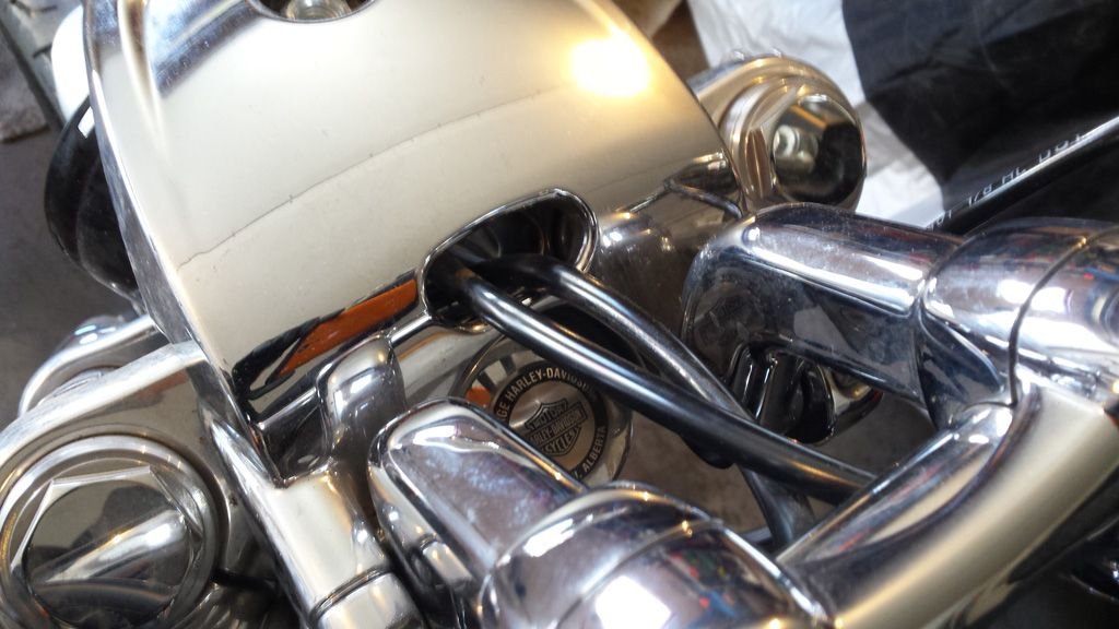 I will need a headlight extension bracket for Memphis Shades Cafe fairing. The choice was $45 CDN for the MS bracket or $25 for a lump of aluminum. So I'm going to whittle my own bracket. I'll post that process soon.For now here is the disassembly and install. I'll cover the cables once my extended cable order arrives. I'll also show the ABS swap when that part arrives. I'm also relocating my turn signals, but there is an H-D kit for that. If you plan on doing a relocation, the tank step, and access the wires under the tank are all the same.