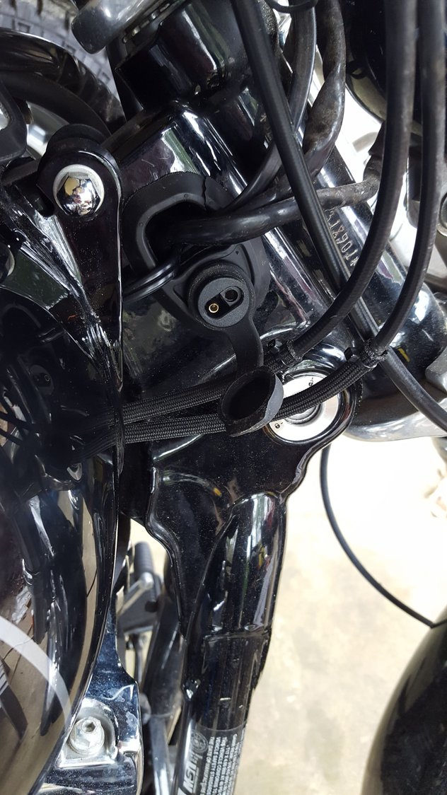 There is very little real estate on a Harley to hide extra components, so I improvised by adding a cheap fork bag to house the unit, and blended the wires in with the harness running under the tank console. This is not ideal, but it looks awesome and will work until I engineer a more permanent solution.