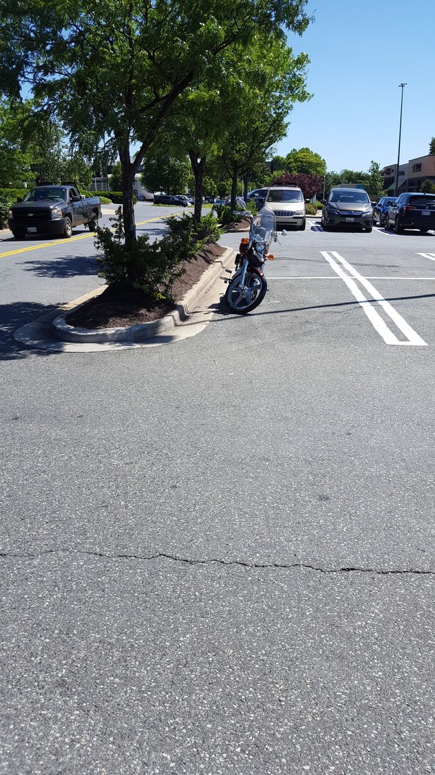 Here's some photos, from the day of the incident and in the shop. It appears to me that the bike was hit pretty much straight on from the front, probably by an SUV or pickup backing out from the facing space, thinking my space was empty. Just a guess, since bike has a relatively small and low profile. Looks like the impact was hard enough, and high enough, to drive the front wheel into the ground judging from the scrapes on the rim and the pavement scrapes from wheel and kickstand. The wheel itself appears relatively intact, no obvious cracks, bends or breaks other than the scrapes. Need to pull it and see if it balances on my handy-dandy home balancer. Tire holds air just fine. Frame looks OK to me as well, no obvious damage to my untrained eye.