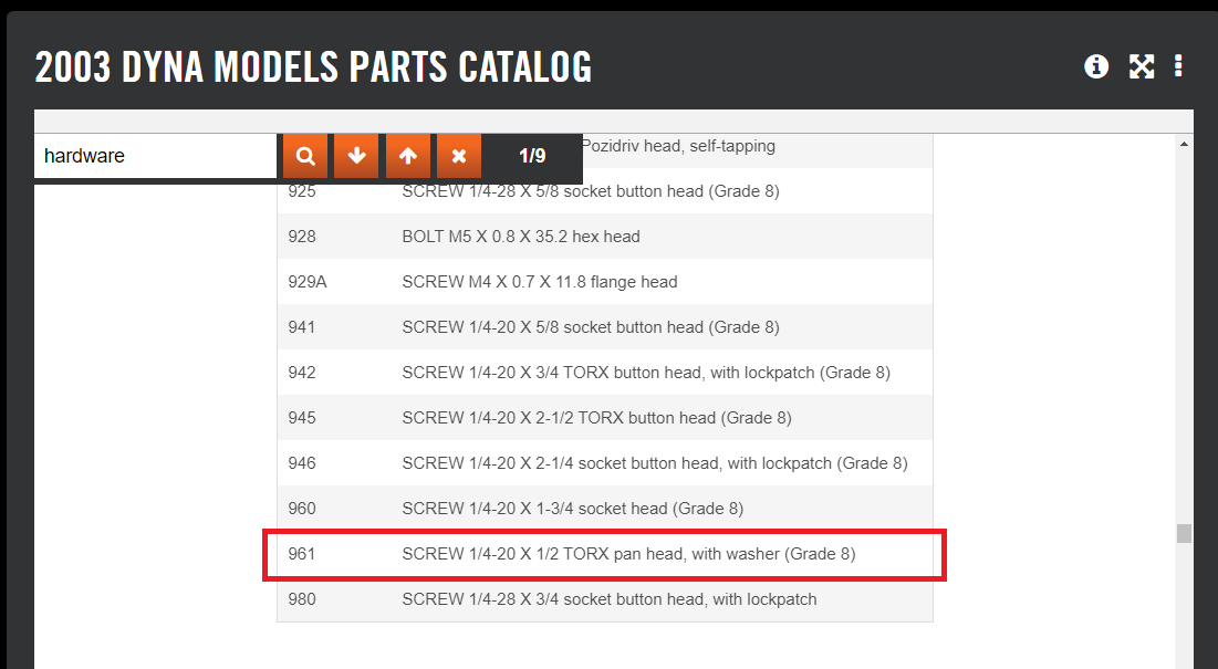 hey @FXD2003Rider where did you pull those part numbers and info from? Would love to find a central repository for ALL the bolt/nut sizes without having to search the forums endlessly, lol